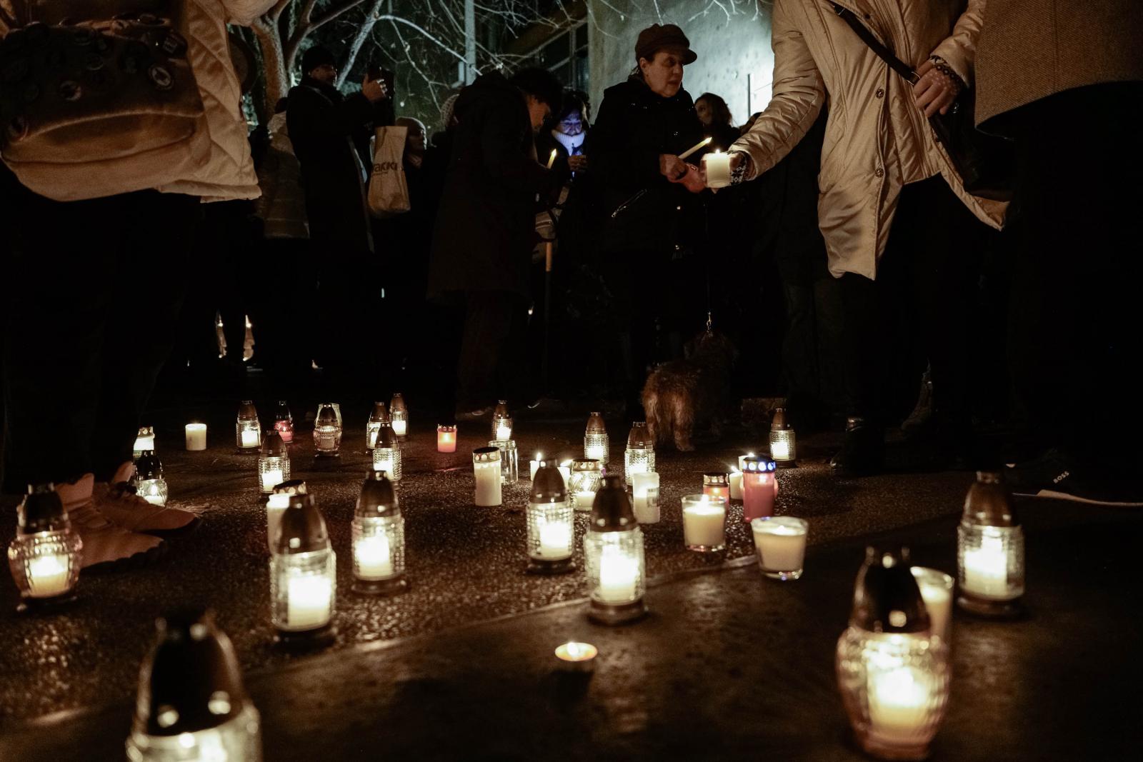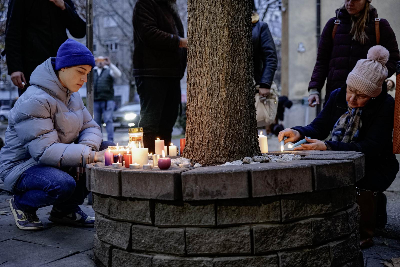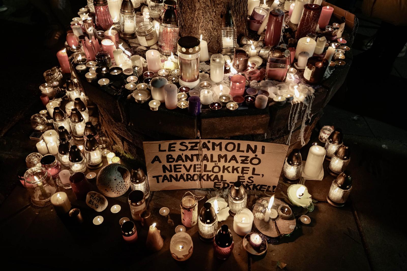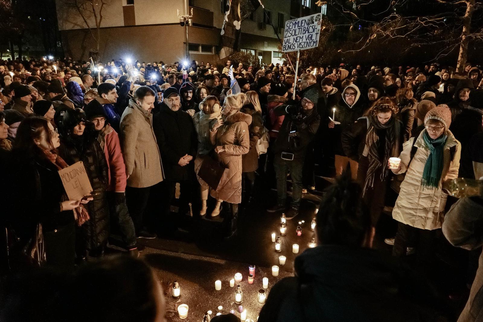 Beszédek nem lesznek, az intézmény bejárata előtt mécsesek égnek, az egész utcában szinte templomi csend van, ahogy a tüntetők a bejárat előtt leteszik a mécseseiket és mennek tovább, hogy helyet adjanak a következő résztvevőnek. A tömegben Puzsér Róberten kívül megpillantottuk Jámbor András józsefvárosi-ferencvárosi parlamenti képviselőt, Dobrev Klárát, a Demokratikus Koalíció elnökét, Hadházy Ákost és azt a Juhász Péter youtubert is, aki a héten több videót is nyilvánosságra hozott az intézményben történt brutális gyerekverésekről.
