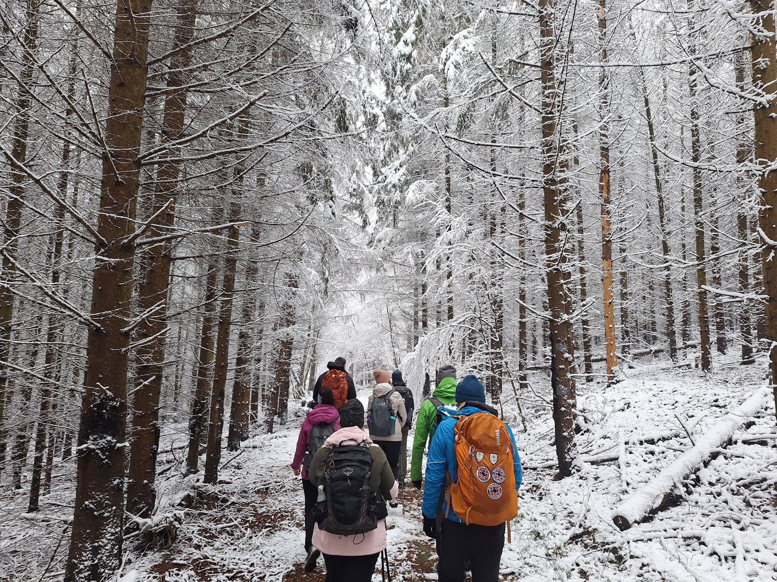 Jó szolgálatot tett ugyanakkor a síp is. Egyik társunk ugyanis „elveszett” egy bozótosabb szakaszon. A téli erdőben könnyebb elveszni, hiszen a tereptárgyak kevésbé felismerhetőek, és a turista is jóval kevesebb, mint nyáron. A turistajelzések ugyanakkor nem mindig láthatók, főleg ha azok sziklákra, kövekre vannak felfestve. Ennélfogva GPS, térkép használata elengedhetetlen a tájékozódáshoz. Mi a Strava nevű applikációt használtuk – néha előfordult ugyan, hogy nem mutatta a helyes irányt… Túra során természetesen kulcsfontosságú pihenők beiktatása is, illetve az energiaraktárak feltöltése egy-egy müzliszelettel, folyadékkal.