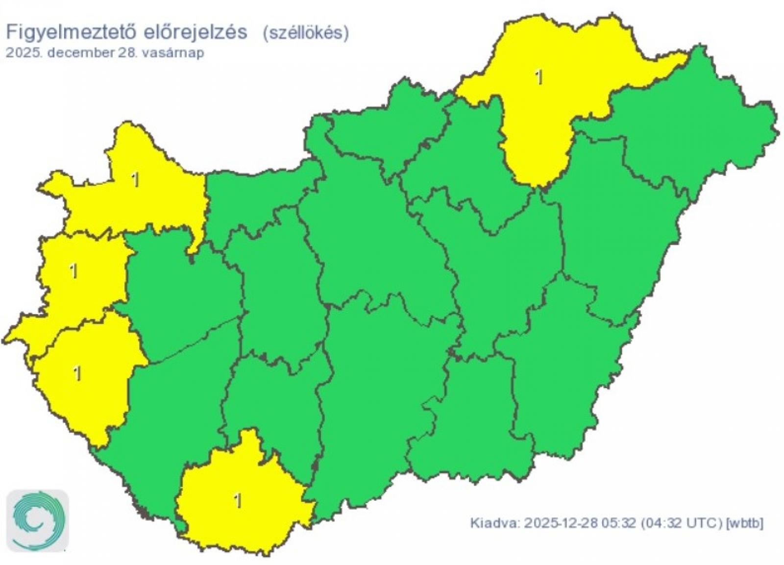 A szél miatt öt megyére (Baranya, Borsod-Abaúj-Zemplén, Győr-Moson-Sopron, Vas és Zala) elsőfokú figyelmeztetést adtak ki, itt a várt legerősebb széllökések meghaladhatják a 70 km/h-t. Estére fokozatosan veszíteni fog az erejéből a légmozgás.