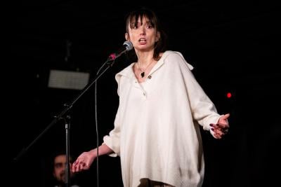 Beülünk az egyik szobába az új darab nyilvános olvasópróbájára. Nagyon közel szemben velünk ül a két főszereplő, a Feledyt alakító Gyabronka József és a Monspart Saroltát játszó Péterfy Bori. Tasnádi István, aki rendezi is az előadást, mindkettőjükkel többször dolgozott már. Feledy szerepére, ahogy mondta egy intellektuális beállítottságú színészt keresett, Saci szerepére pedig egy olyan színésznőt, aki tud kissé kemény és érdes is lenni.
