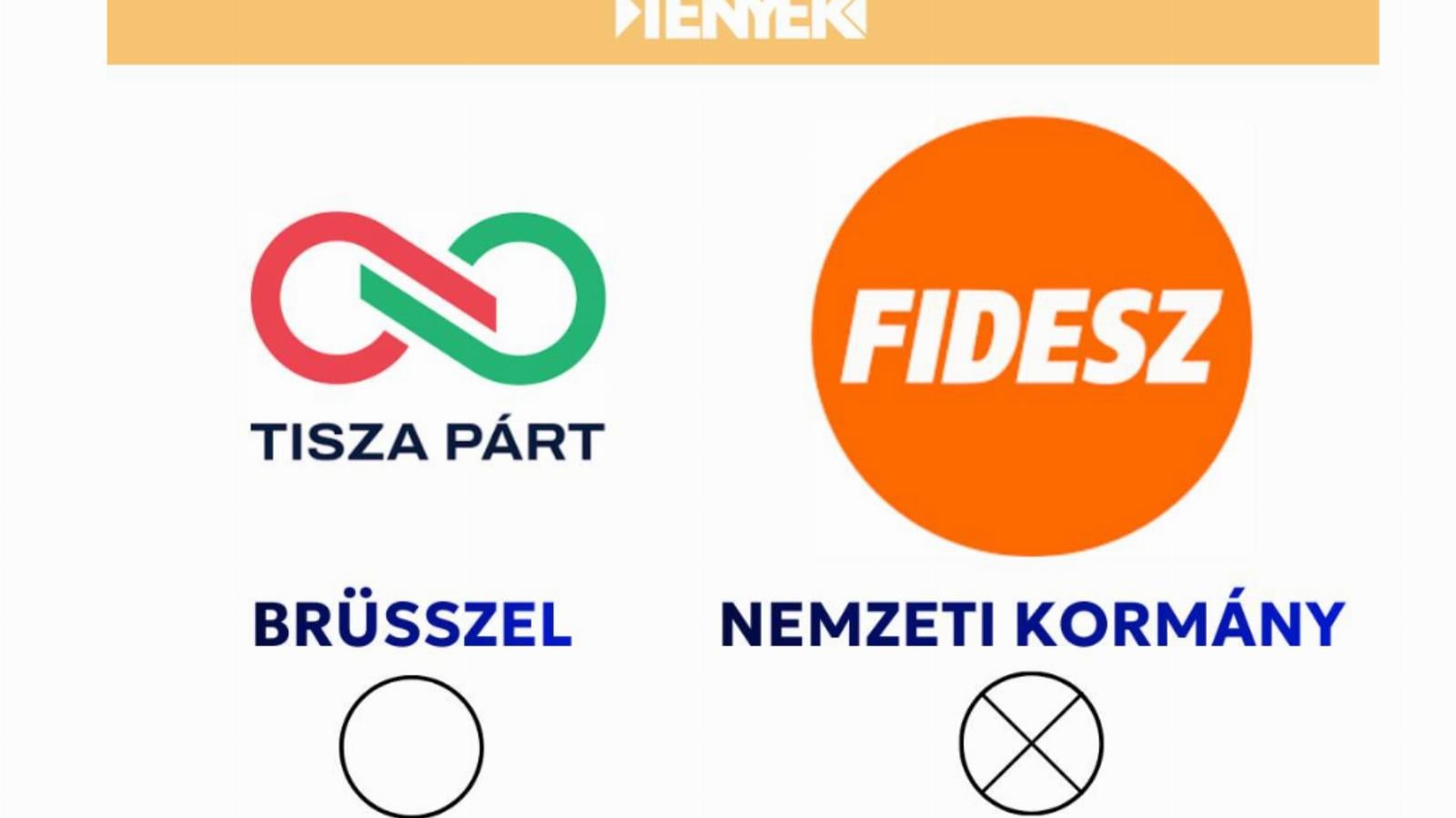 A Tisza Párt logója alatt a Brüsszel, a Fideszé alatt pedig a nemzeti kormány meghatározás szerepel, s ha még ez sem lenne egyértelmű, még az x-et is behúzták a Fidesz alá.