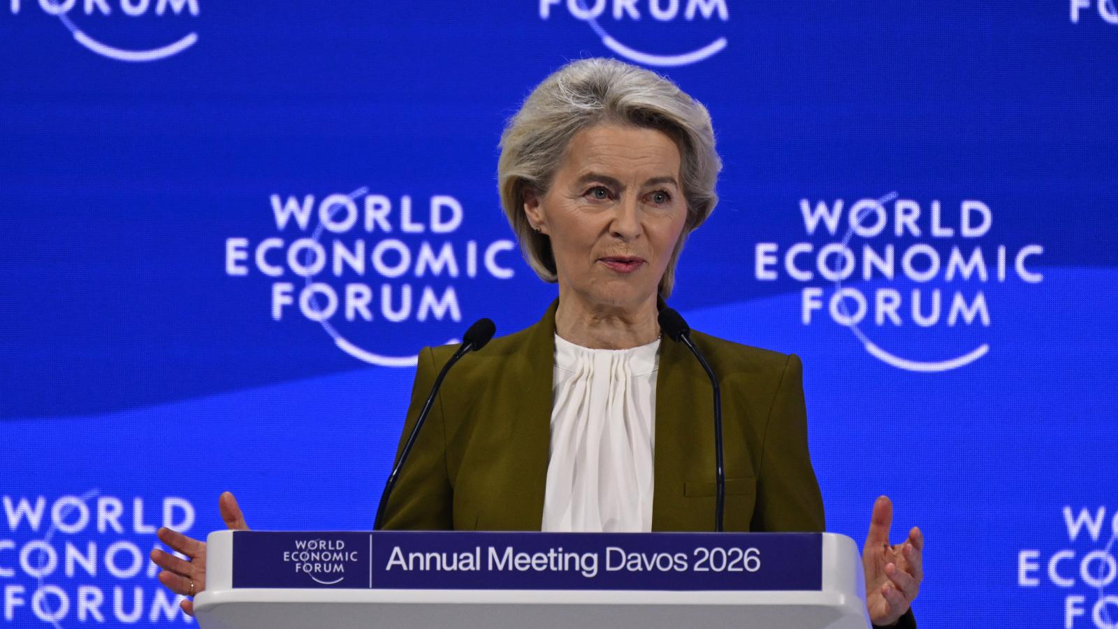 Ursula von der Leyen arra figyelmeztette az Egesült Államokat, hogy tartsa távol magát Grönlandtól, és leszögezte, hogy az autonóm dán terület szuverenitása nem képezheti vita tárgyát. Donald Trump korábbi bejelentésére, amely szerint a terveit ellenző európai országokra, hat EU-tagállamra, valamint az Egyesült Királyságra és Norvégiára már február 1-jétől tíz százalékos büntetővámot vet ki, ugyancsak élesen reagált az uniós vezető. Nem az amerikai vezetést, hanem az „Egyesült Államok népét” nevezte Európa barátainak, és figyelmeztette a Trump-adminisztrációt, hogy tartsa tiszteletben a tavaly nyáron Skóciában kötött kereskedelmi megállapodást, amely 15 százalékos vámplafont írt elő a legtöbb európai exporttermékre.