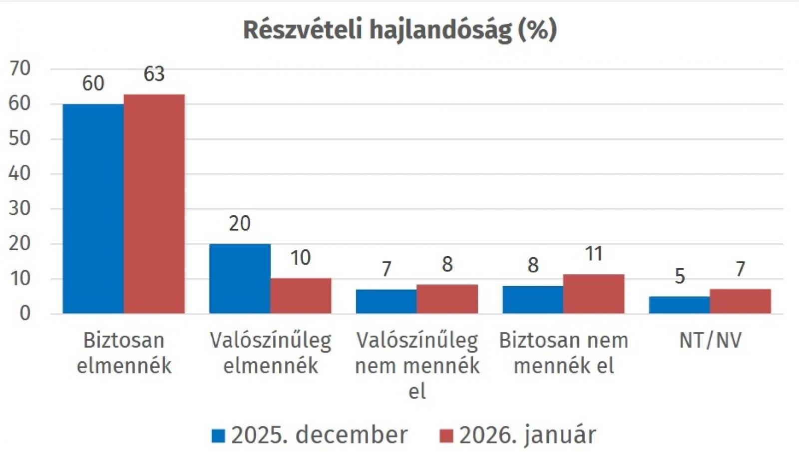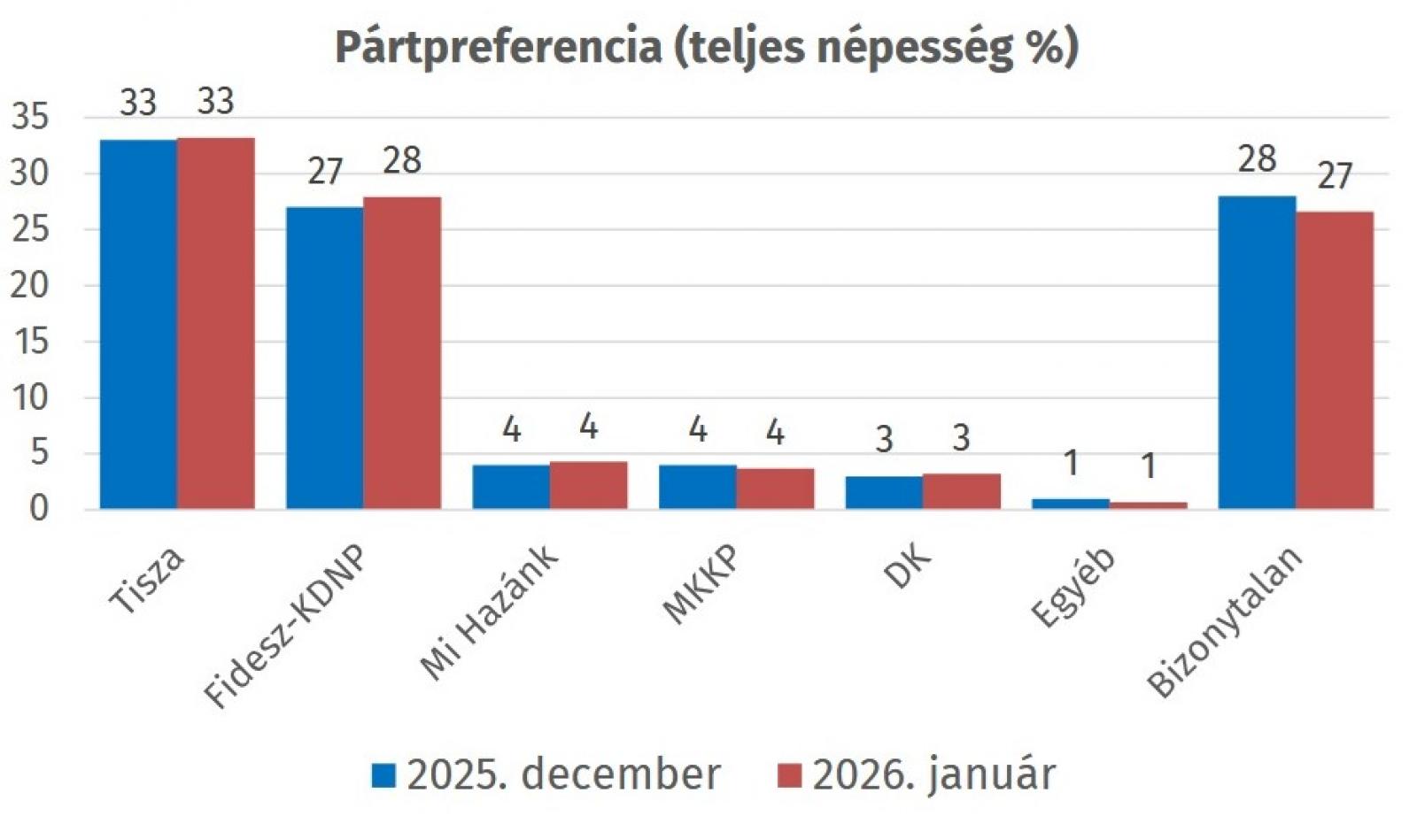 összességében kevesebb szavazásra nyitott választó van, mint tavaly év végén, ami ebben a pillanatban inkább a Fidesznek kedvező, viszont a hosszú távú trendet és a Tisza előnyét nem kezdte ki.