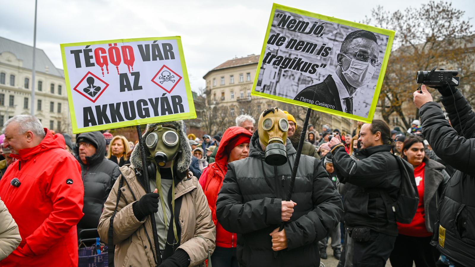 „Csernobil 2.0” és „Bukjanak” feliratú táblákkal érkeztek a demonstrálók Szijjártó Péter minisztériumához, ahol gyülekezés alatt a Szabad a grund szólt a Pál utcai fiúkból, de a szereplők neve helyett az akkugyárakról elhíresült városok nevével: „Debrecen? Itt leszek! Göd? Itt leszek!... ”