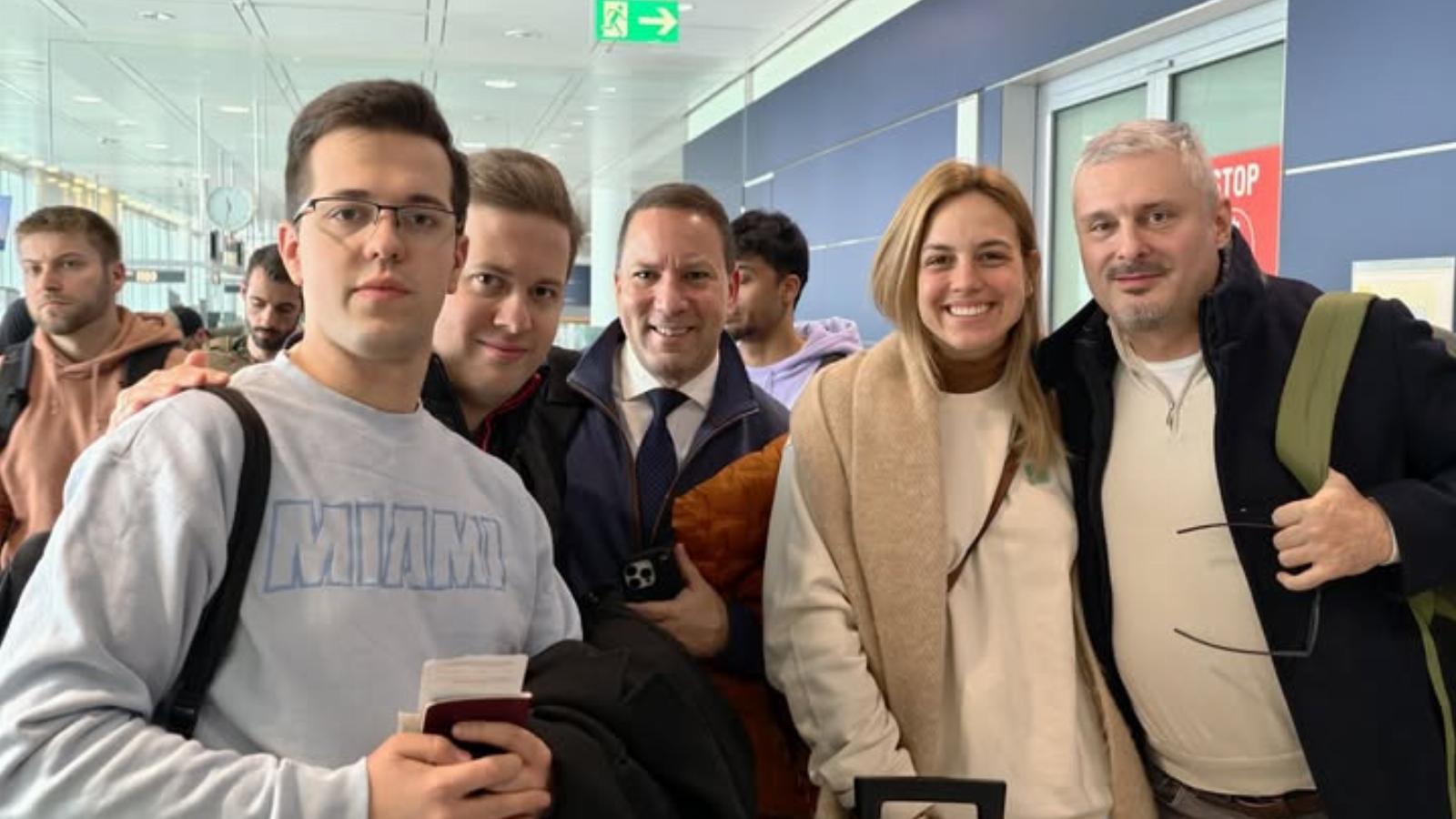 A kép a müncheni reptéren készült, innen utaznak tovább az amerikai fővárosba, ahol Donald Trump Béketanácsa az alakuló ülését tartja majd meg.
