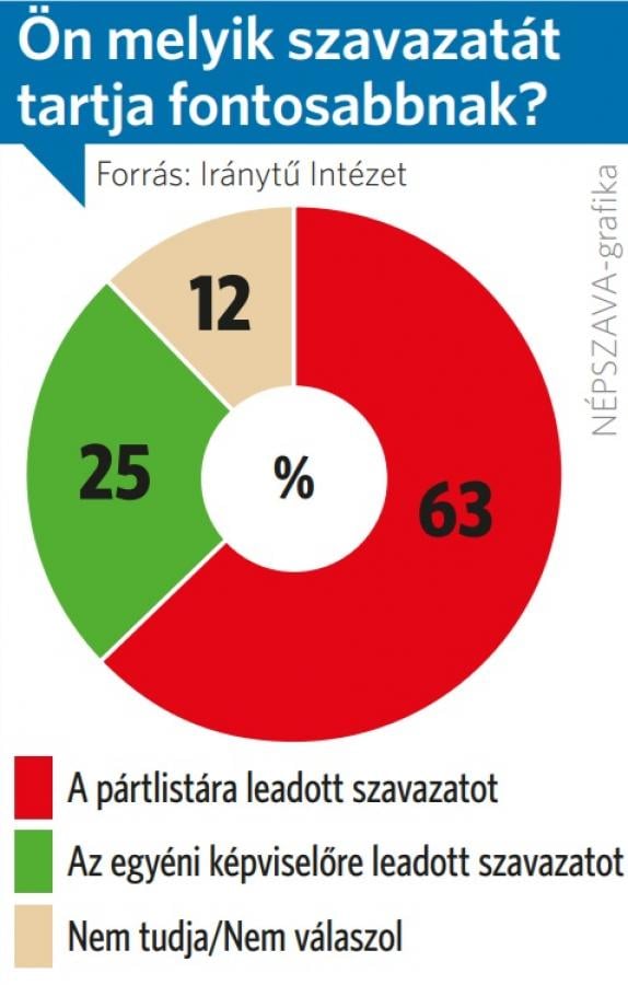 Bár az egyéni körzetekben történő visszalépések továbbra is vita tárgyát képezik a Tisza és más szereplők között, a jelek szerint a választók számára ez kevésbé hangsúlyos. Az Iránytű adatai alapján a teljes népesség 63 százaléka fontosabbnak tartja a listás szavazatát, mint az egyéni jelöltre leadott voksát. Mindössze 25 százalék gondolja úgy, hogy az egyéni szavazata a fajsúlyosabb, 12 százalék pedig nem nyilvánított véleményt.