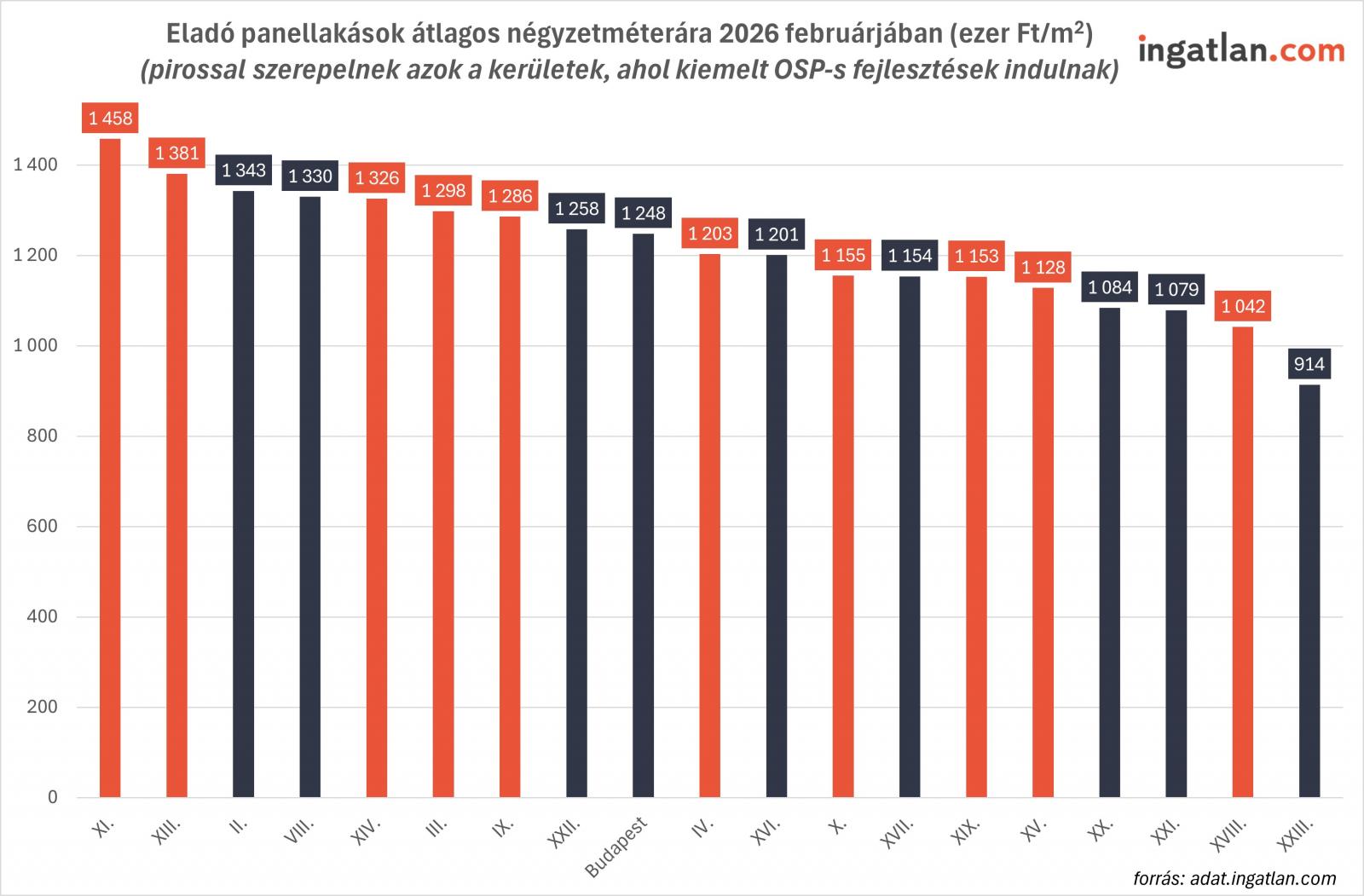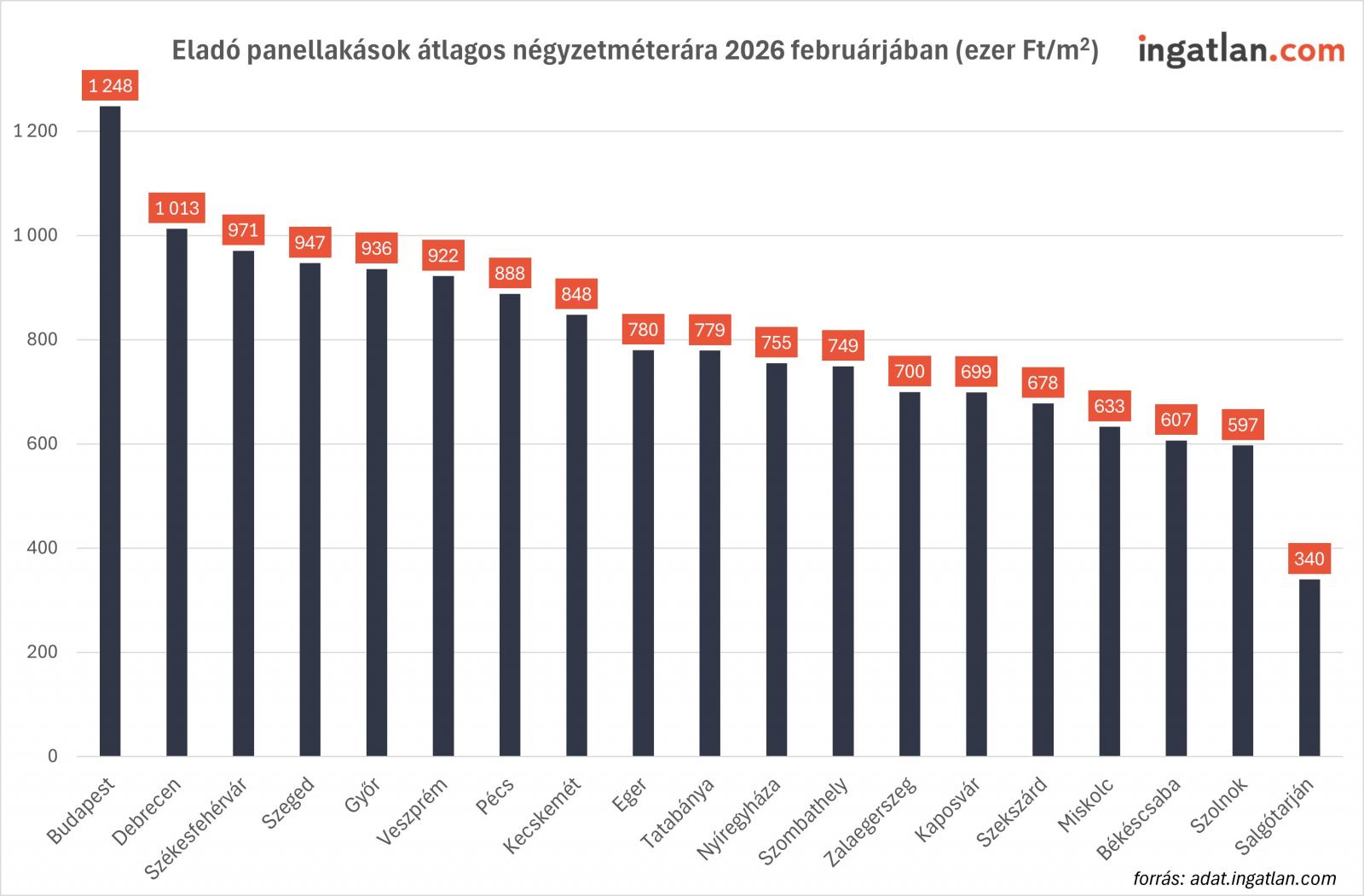 Több ezer új lakás és ikerház épülhet Budapesten, nyomás alá kerülhetnek a használt ingatlanok eladóiAz ingatlan.com adatai szerint februárban több mint 9,3 ezer panellakást hirdettek eladásra országszerte. A fővárosban a panellakások négyzetméterárainak a középértéke 1,25 millió forint, ami 21 százalékkal olcsóbb a használt téglaépítésű lakásoknál. Az elemzés alapján