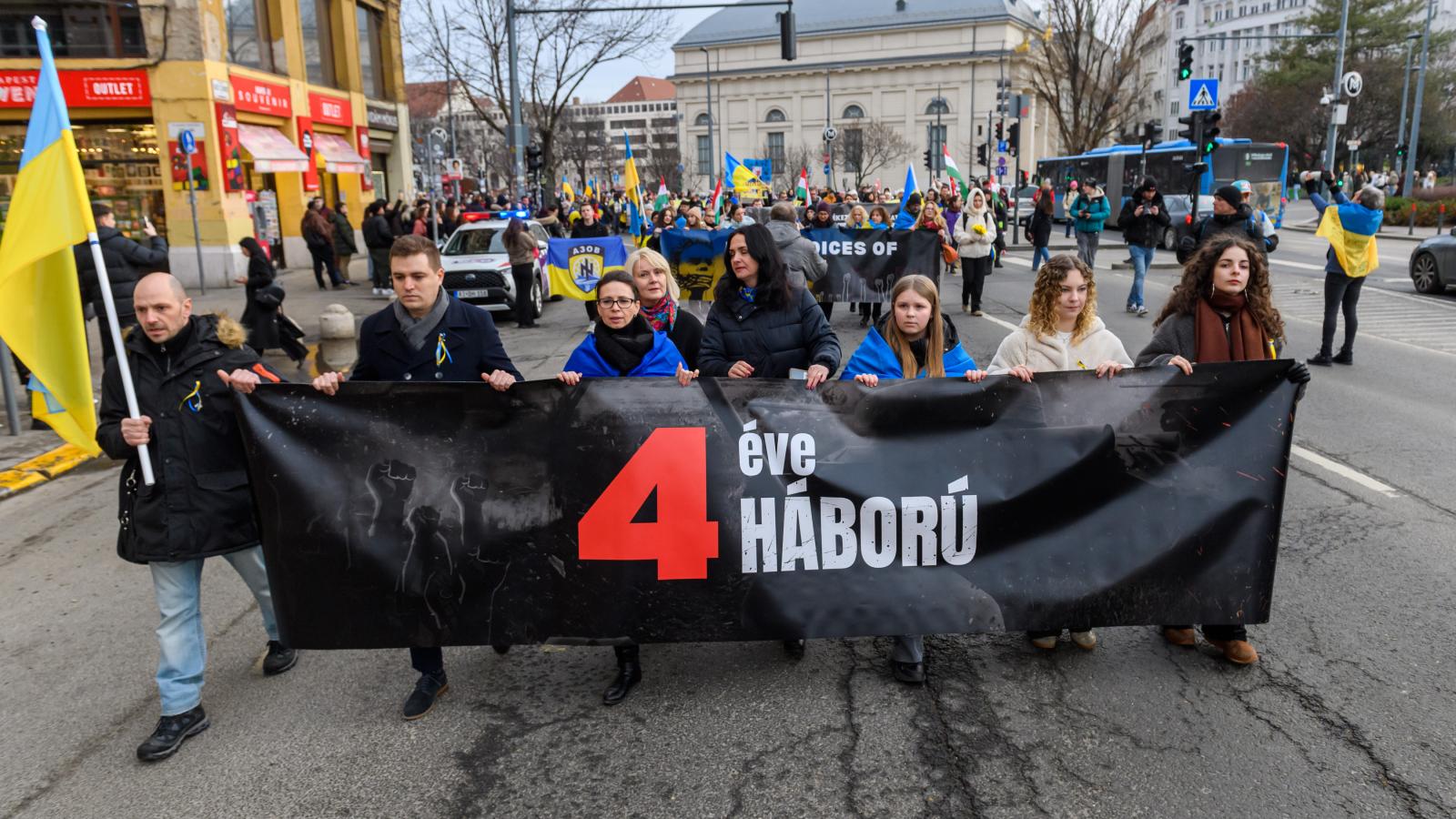 A szomszédunkban zajló háború negyedik évfordulójáról ki-ki a maga módján emlékezett meg. Orbán speciel kis zöld ukránokat vélt látni, akik ellepik az energiaközpontjaink környékét. Az európai vezetők közben szolidaritásuk jeléül a minuszokban fagyoskodó Kijevbe utaztak. Az ENSZ új javaslatot tett a fegyverszünetre, amelyet a támadók persze csípőből elutasítottak. De még az ambivalens magatartásra hajló amerikai alelnök is felhívta állama nevében Zelenszkijt. Itthon ellenzékiek demonstráltak az orosz követség előtt, Karácsony Gergely mondott beszédet.