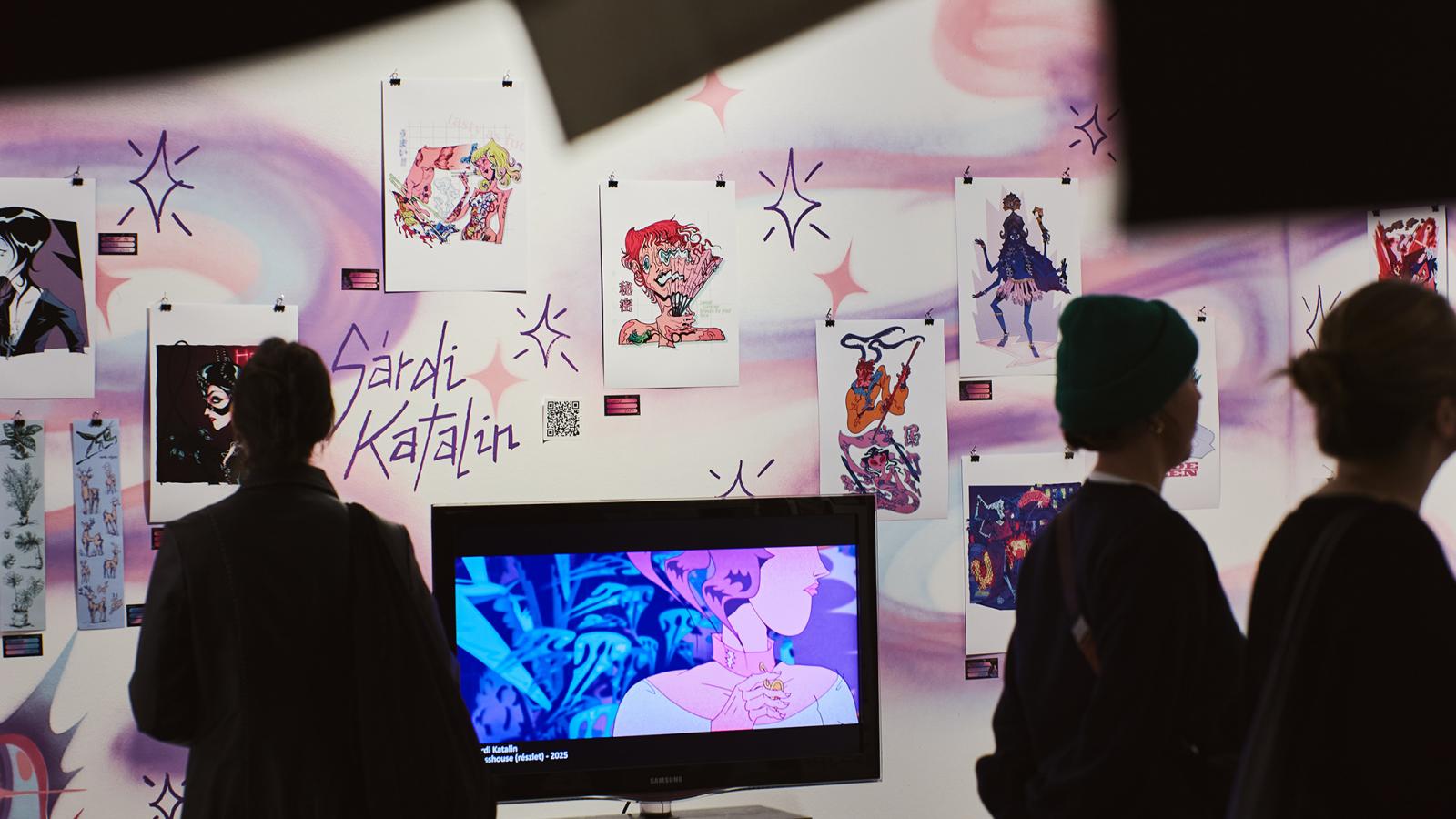Közben megtaláljuk Sárdi Katalin munkáit is, amelyek a nyolcvanas évek neonfényes popvizualitását idézik. Az animációs rendező és illusztrátor a japán anime, a Cartoon Network és a klasszikus képregények esztétikáját használja kiindulópontként. Energikus, gyermekien merész kompozíciói fanart-szerű tisztelgések a popkultúra különböző szereplői előtt, miközben egyedi szuperhős-univerzumot is kiépítenek.