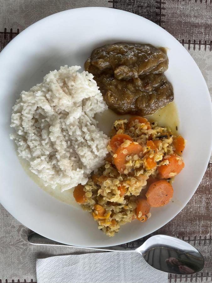 Az étkezések szintén az ájurvéda elvei szerint zajlottak. Meleg, frissen készült, könnyen emészthető fogások, sok zöldséggel, fűszerekkel, húsmentesen. Nem volt kávé, nem volt cukor, nem volt feldolgozott élelmiszer. Az első két nap enyhe fejfájással reagált a szervezetem – a megvonás jeleként –, de utána meglepő könnyedséget tapasztaltam, ami a testi tisztulás jele is volt. Az emésztésem rendeződött, az energiaszintem kiegyensúlyozottabb lett. Ételeinket is közösen készítettük el, ami az egymás közötti kapcsolódást erősítette. A legfinomabb és legérdekesebb étel számomra egy „mungo” babból készített főzelék volt.