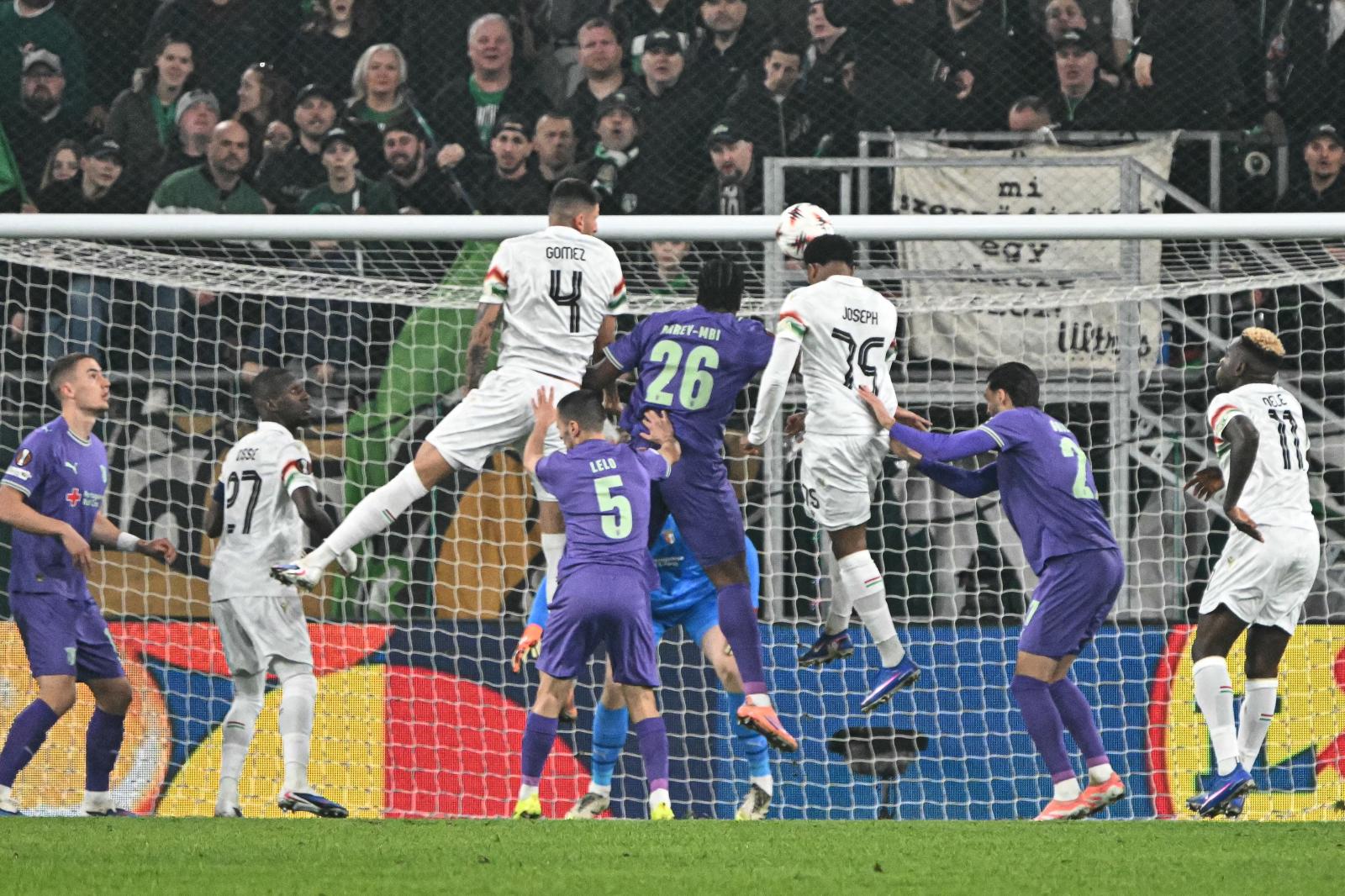 4. perc: a ferencvárosiak végezték el a mérkőzés első szögletét, a Yusuf fejelte a kapu fölé a beadott labdát.