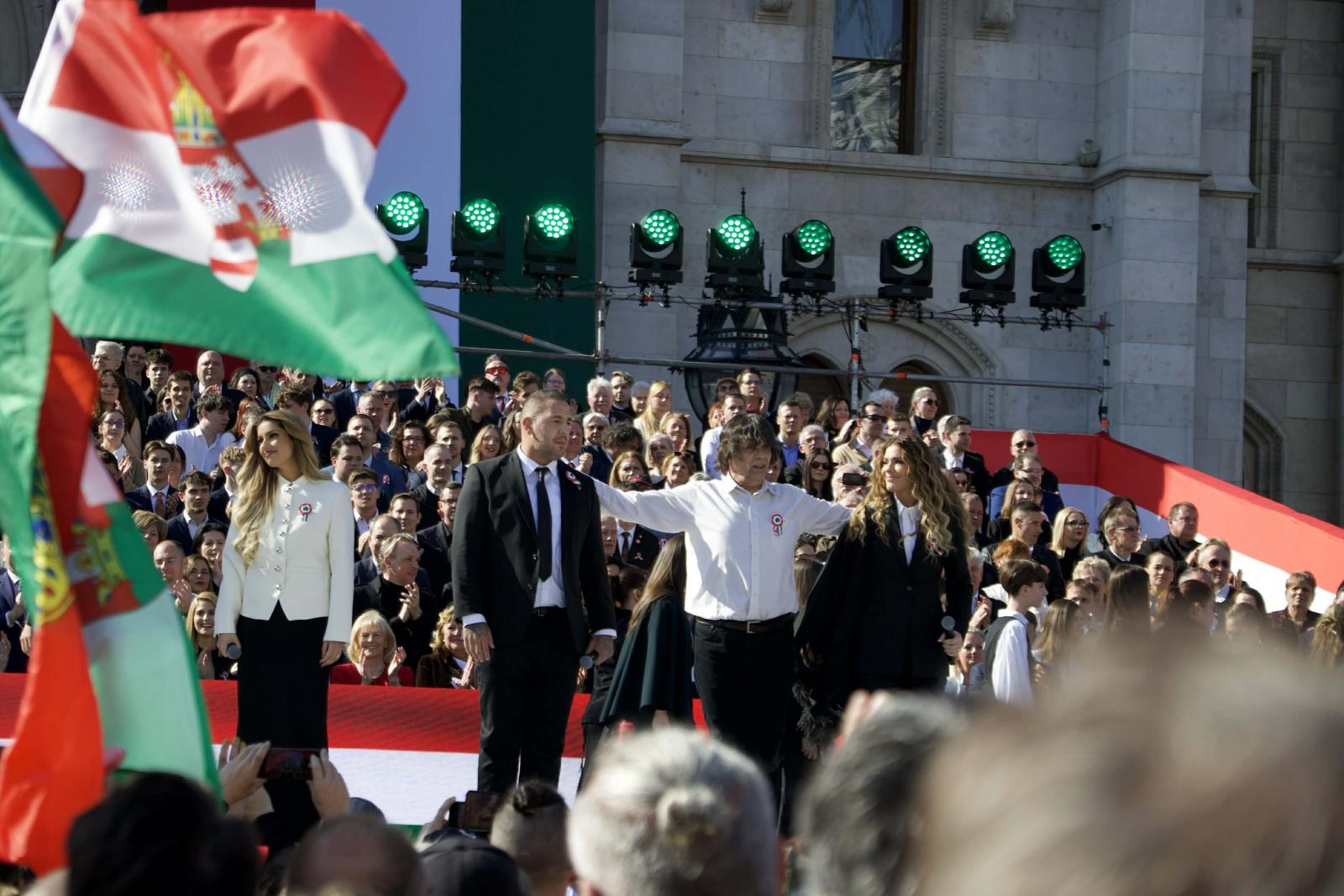 Katonai tiszteletadás mellett felvonták a nemzeti lobogót a március 15-i nemzeti ünnepen, vasárnap reggel Budapesten a Kossuth Lajos téren.