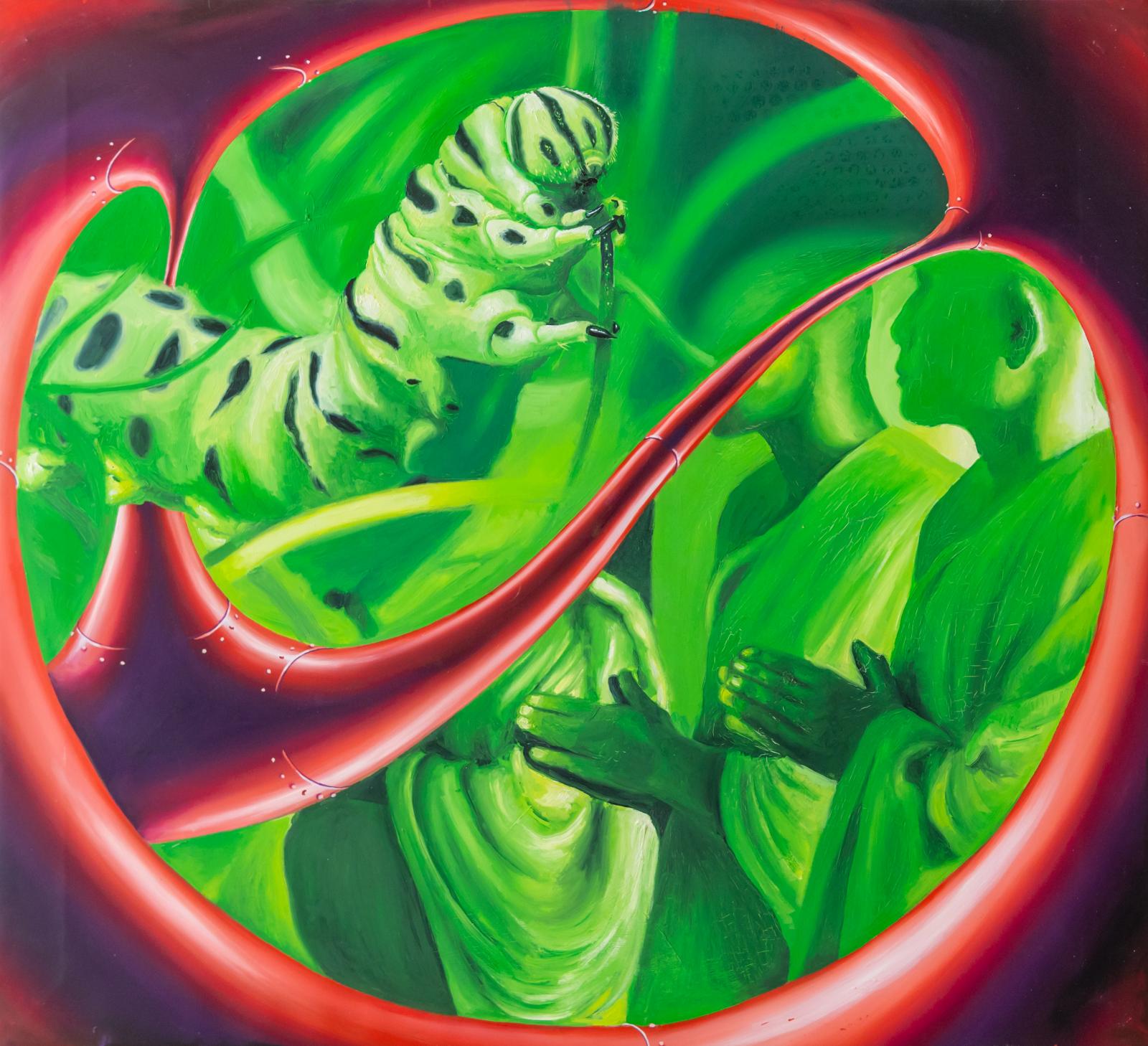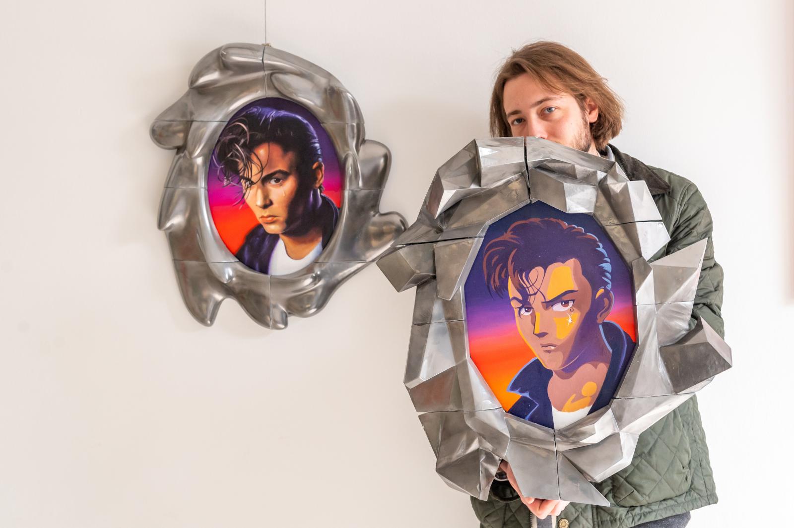 – Én a múltat szeretem, és boldoggá tesz, hogy azt már a gyerekkoromnak tudhatom. Ez egy lezárt korszak, ami nincsen már közvetlen hatással az életemre, legfeljebb áttételesen. Másrészt azért szeretek ennek az időszaknak a popkultúrájával és vizuáljával foglalkozni, mert előbb találkoztam vele és fogyasztottam, mint a szépművészetet. Illetve azt érzem, hogy amit el akarok mondani magunkról és a világról, azt legkönnyebben ennek a korszaknak az alakjaival tudom elmondani – mondja Dániel, aki a figuráit általában úgy ábrázolja, mintha azokat egy űrhajó belsejéből szemlélnénk monitorokon, vagy mintha azokat egy idegen civilizáció vizsgálná időn és téren át.