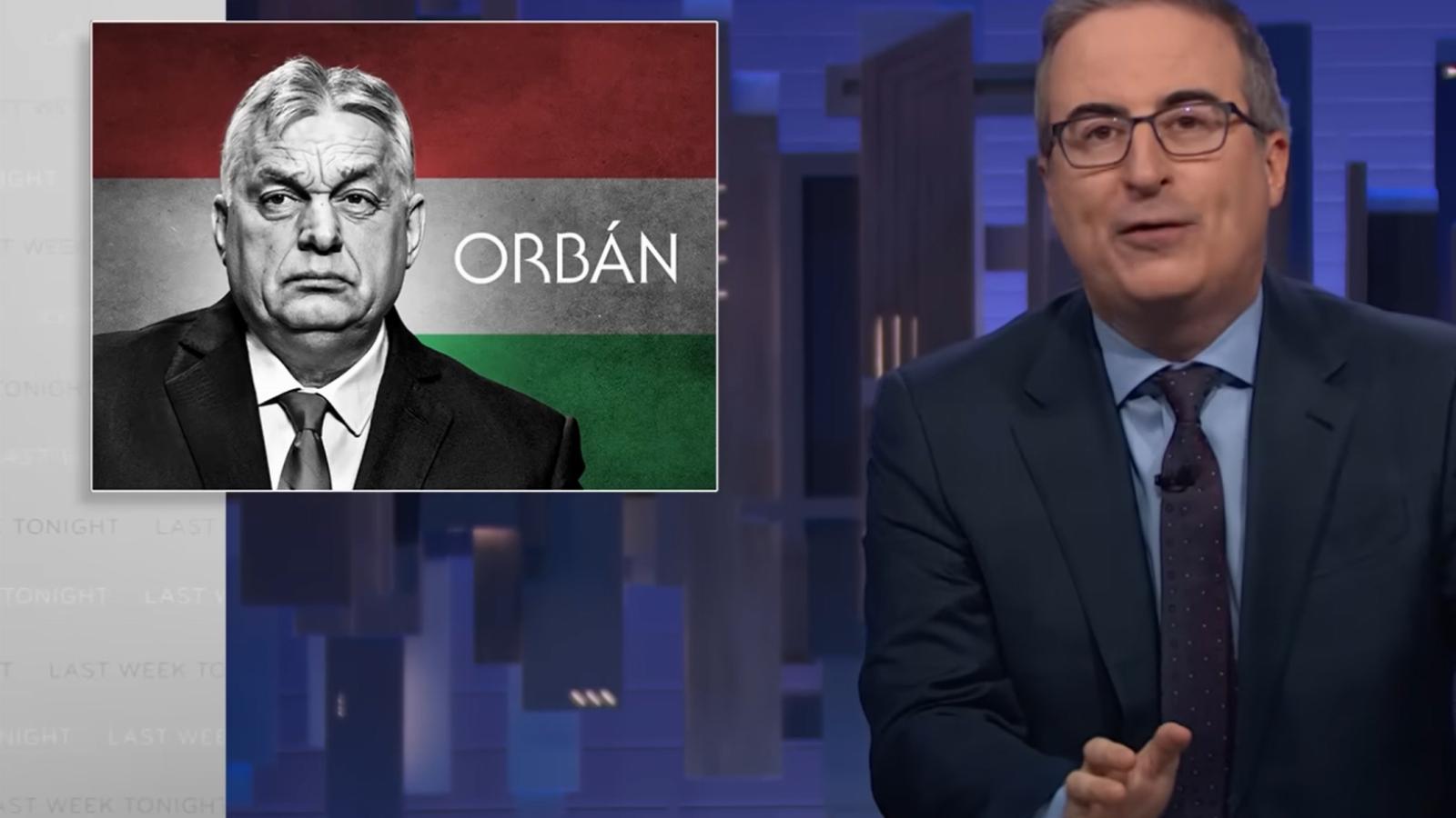 A magyar miniszterelnökről a műsor nézői megtudhatták, hogy tizenhat éve kormányozza abszolút többséggel azt az országot, melynek többek között a filmipar úttörőit, a Rubik kockát, és Arató Andrást, vagyis Hide the pain Haroldot köszönheti a világ. Oliver azzal helyezte kontextusba a magyar kormányfőt, hogy felsorolta legnagyobb nemzetközi támogatóit: Mairne Le Pent, Benjamin Netanjahut, Javier Mileit és Rob Schneidert, aki néhány napja a Szent István-bazilika előtt bizonygatta, milyen biztonságos Budapest, majd rettegni kezdett a bevándorlóktól és a háborútól.