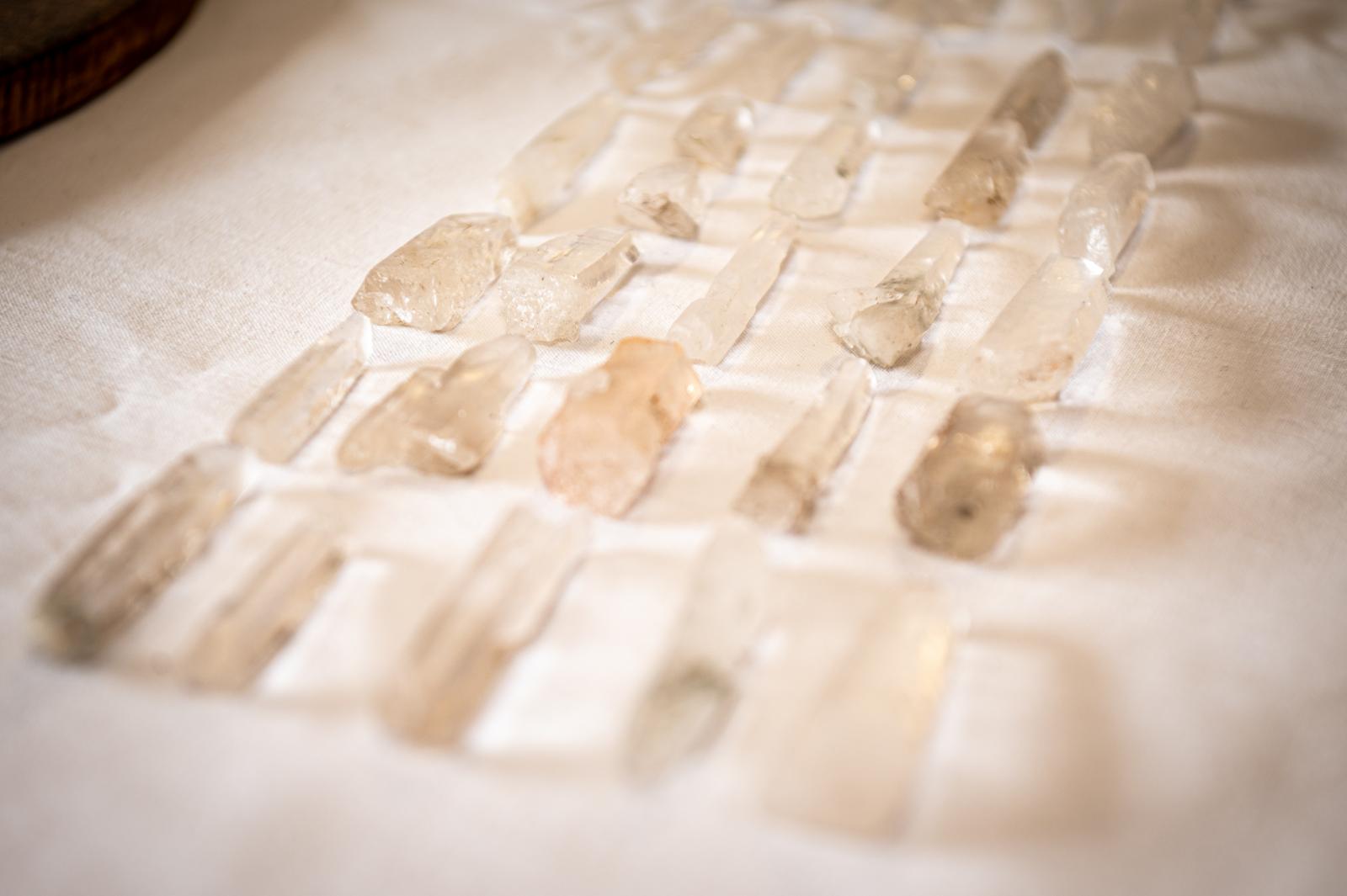 A természet ebben nagyon példamutató, mert nem fukar, nem sajnálja azt se, ha az alkotása gyorsan tönkremegy, a virágok is olyan hamar elhervadnak. Igyekszem olyat alkotni, amivel az ember tud a természethez és a saját isteni ragyogásához is kapcsolódni. Ez mindenkiben benne van, a kristályok csak segítenek felidézni. Ezek a csodás kövek nagy nyomás alatt, a sötétben keletkeztek, nem jókedvükben lettek ilyenek. És amikor mi is megélünk nehézségeket, vagy valami présel, gondolhatunk erre, hogy eközben is fejlődünk, jobb emberré válunk. Nem mindent olvastam könyvekből, szeretem érezni a kristályokat, hogy ők mit tanítanak nekem. Az egyik kedvencem a kétvégű hegyikristály, ami azért különleges, mert mind a két oldala begyógyult, és magától kipottyant a kőzetből. Sokan nem is tudják, hogy nálunk is lehet találni a Mátrában. Nem olyan ragyogó, mint az opál vagy a labradorit, de nyakban hordva nagy erőt ad, hogy a saját belső tengelyünkből próbáljunk tisztán létezni emberként itt a földön. Olyan sok minden van, ami elvonja a figyelmünket erről, ez a kristály pedig erre emlékeztet.