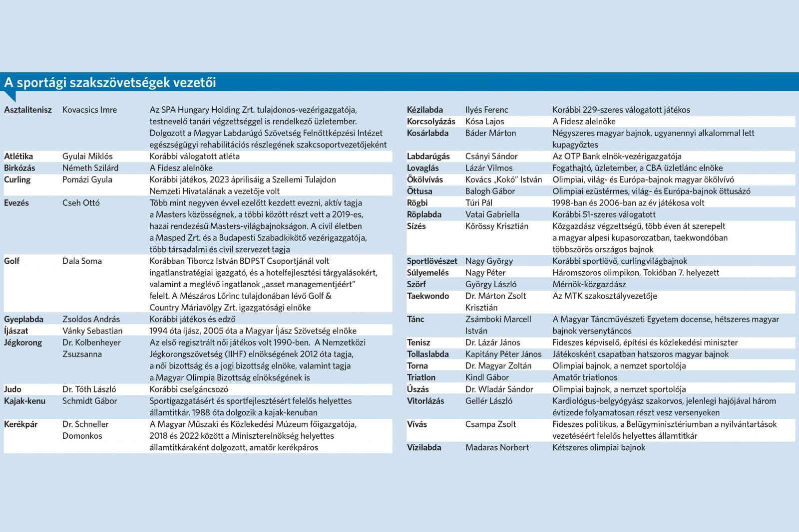 A birkózóknál elnöki pozíciót kapott Németh Szilárd az étkezési szokásait reklámozta lelkesen közösségi oldalán, elődjéről, Hegedűs Csabáról csak a családtagjai és a legjobb barátai tudják, hogy szereti-e a pacalt és melyik hamburger a kedvence. A birkózók jelenlegi elnökéről azt tudjuk, hogy sokat és jóízűen tud enni, sportszakmai tevékenységéről kevés információ látott napvilágot, az utánpótlás-nevelést a sportágában az orosz utódállamok sportolóinak a honosításával kerülte meg. Ugyanezt a módszert alkalmazta Kósa Lajos, a korcsolyázók elnöke is, ő orosz és koreai sportolókkal érte el azokat az olimpiai eredményeket az idei milánói-cortinai téli játékokon, melyek a következő négy évre is garantálják a szövetség kiemelt állami támogatását.