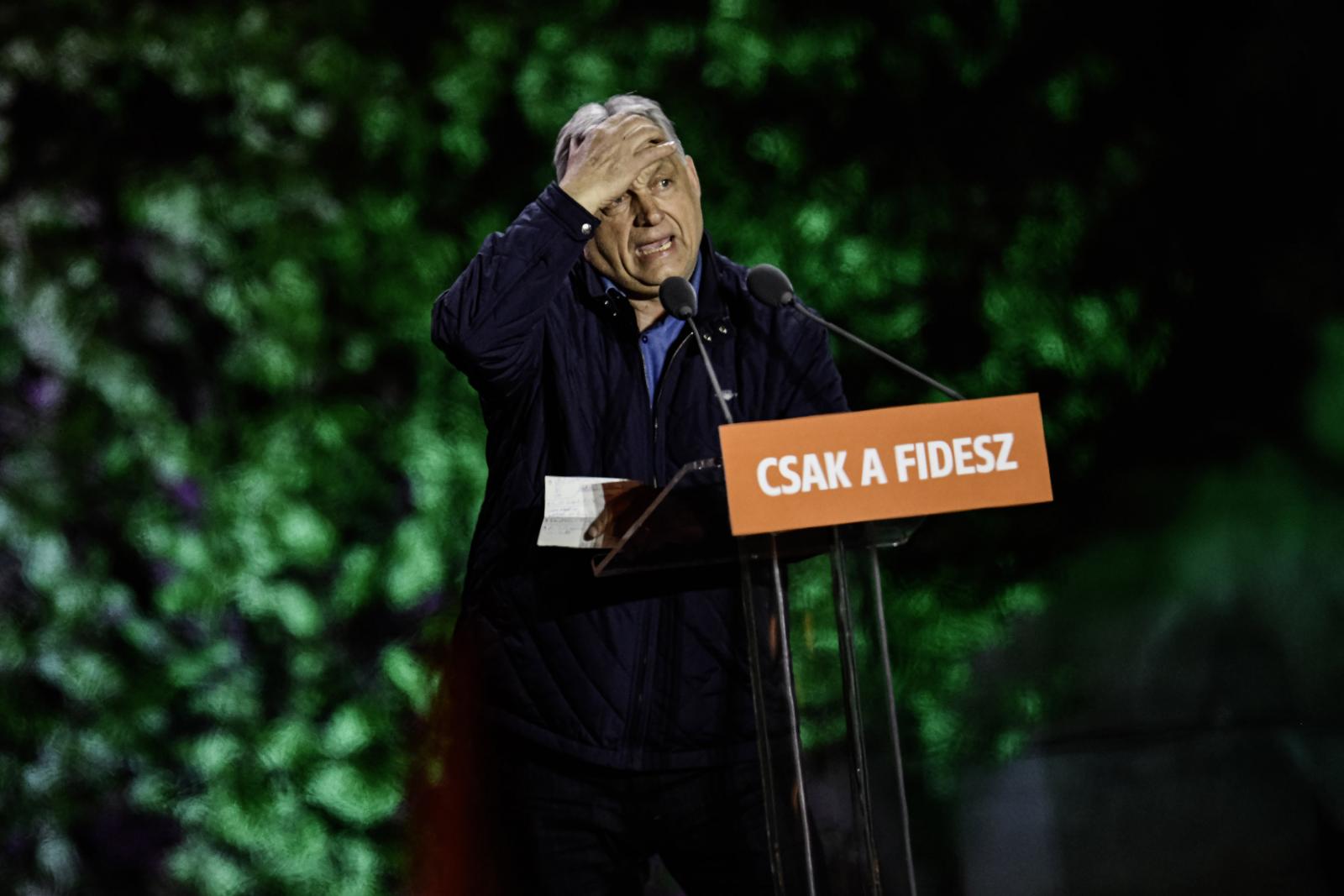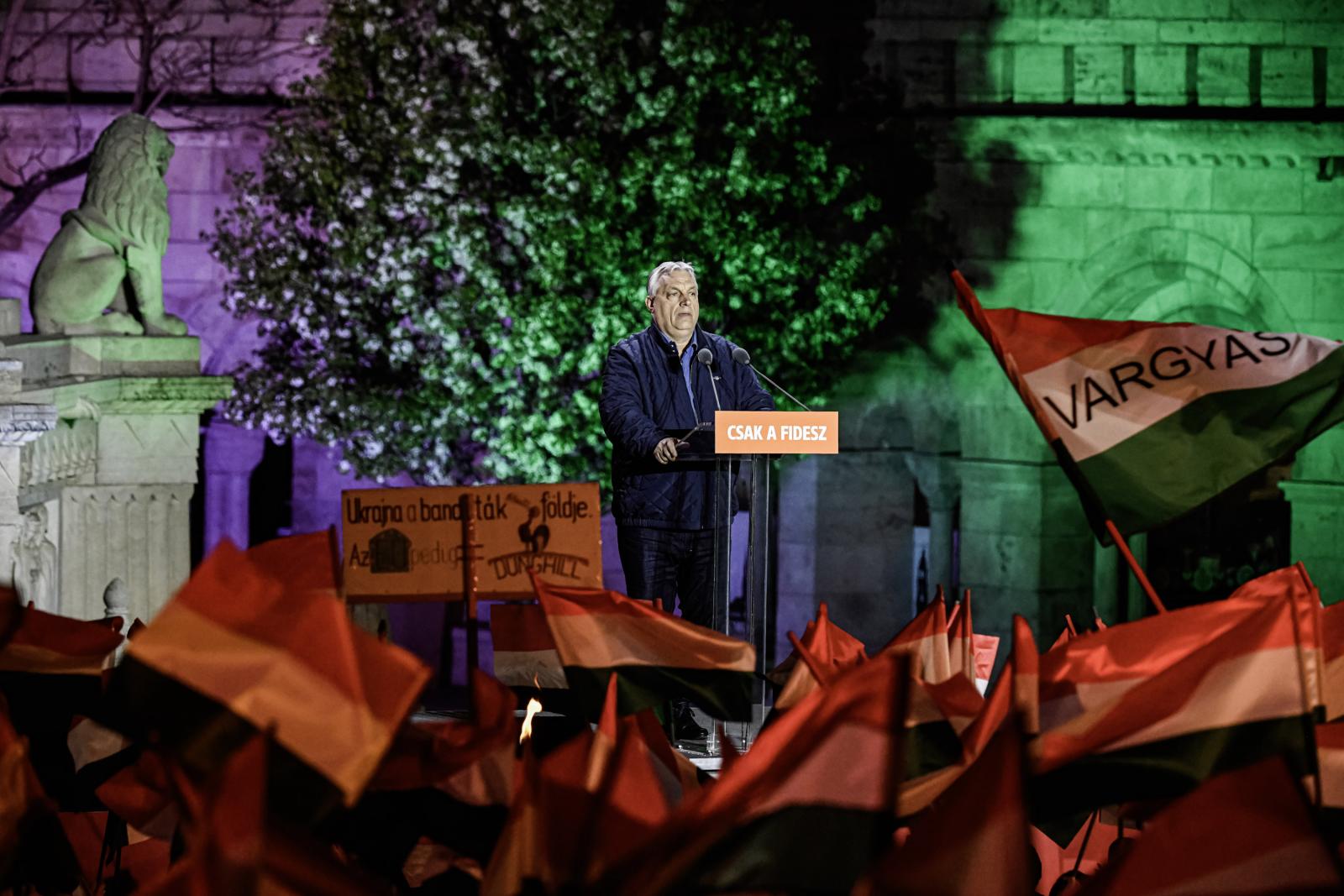 Fantasztikus esténk volt – búcsúzott Orbán Viktor Győrtől, a tömeg egy részén végigfutott az undorA helyszínválasztást kicsit nehéz érteni, ez a szűk lejtő a Mátyás-templom mellett kerületi eseményekre jó talán, nagy kampányzárónak aligha, meg is töltötte a két-háromezer ember a leginkább néhány jó drónfelvétel kedvéért. Budapest amúgy sem a Fidesz terepe: ezt az összefirkált fideszes plakátok is jelezték a budai Várban. Azt tulajdonítsuk valamiféle önironikus gesztusnak, hogy a közönség legalább az egykori Pénzügyminisztérium épületében gyönyörködhetett, amelynek a „történelmi hitelességű” felújítására csaknem 72 milliárdot szórtak el, bár akad 100 milliárdos becslés is.