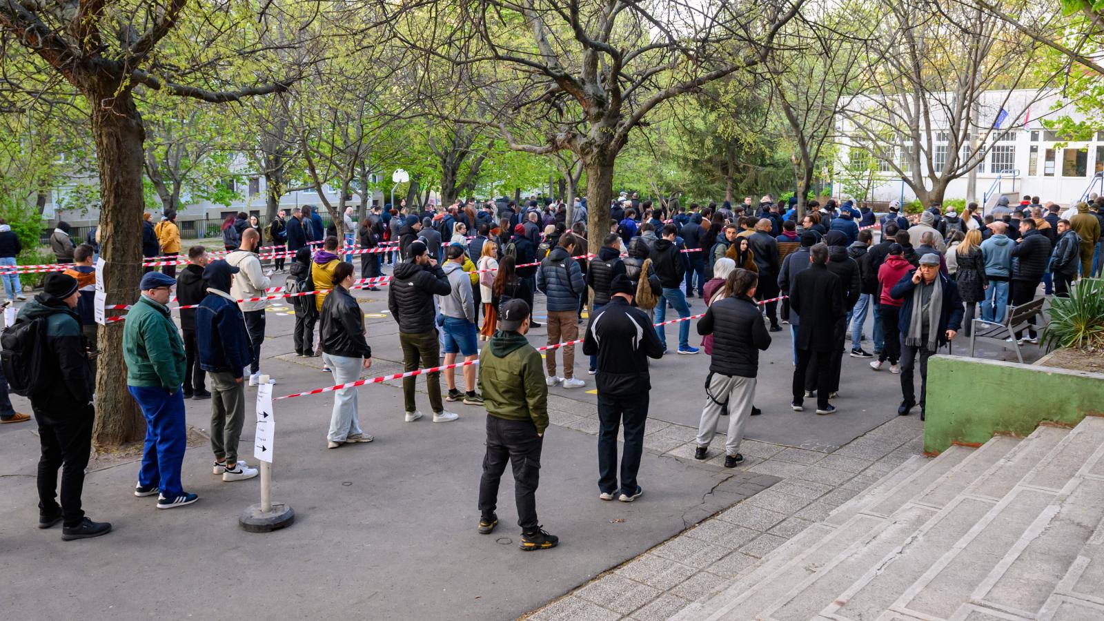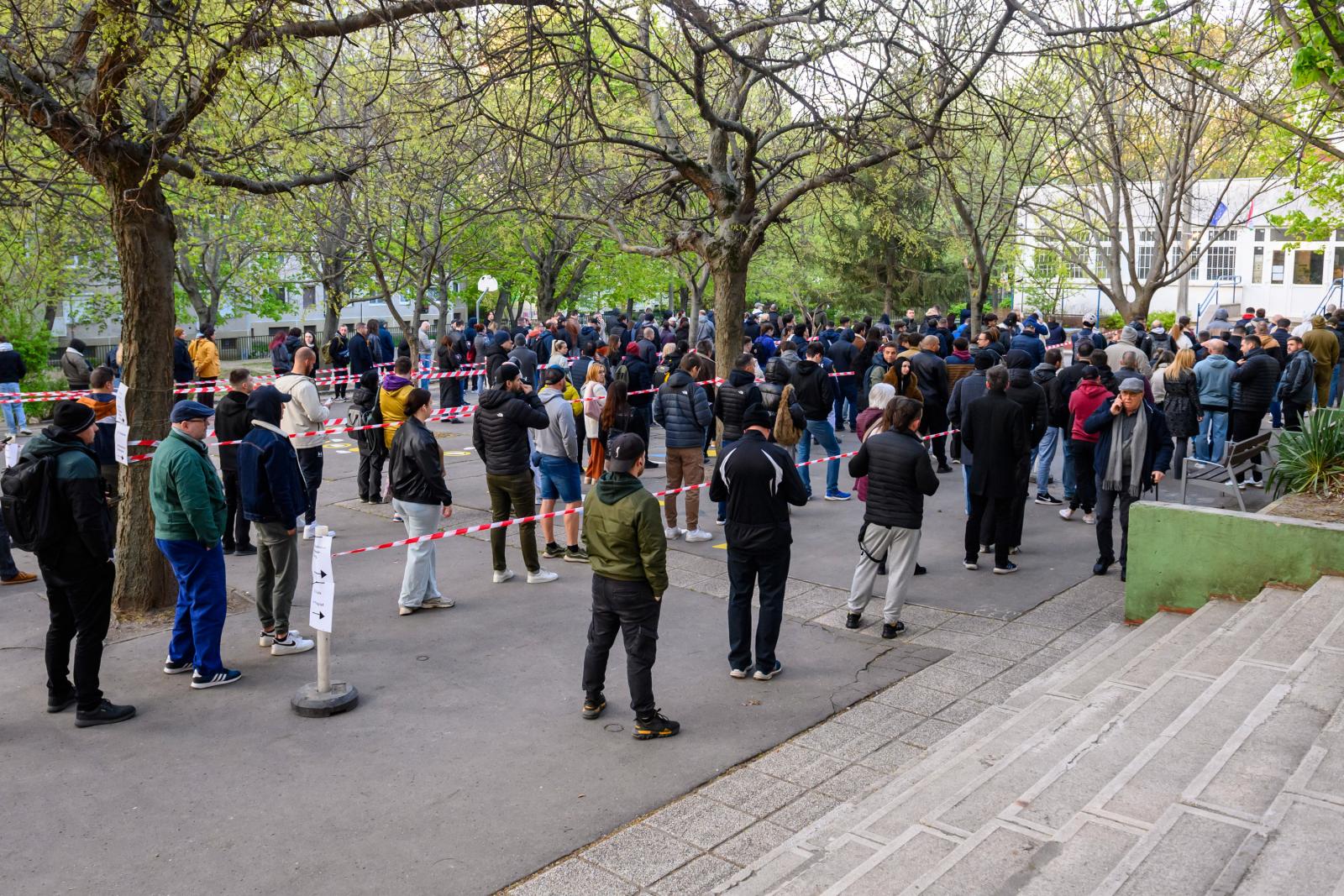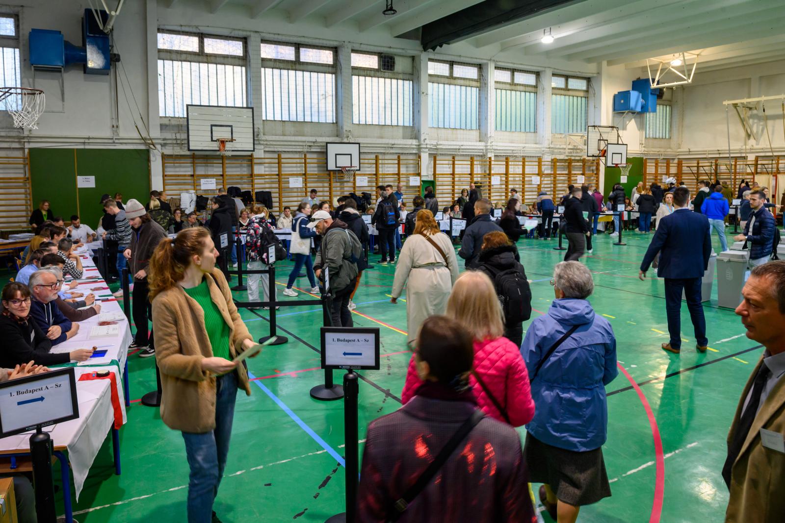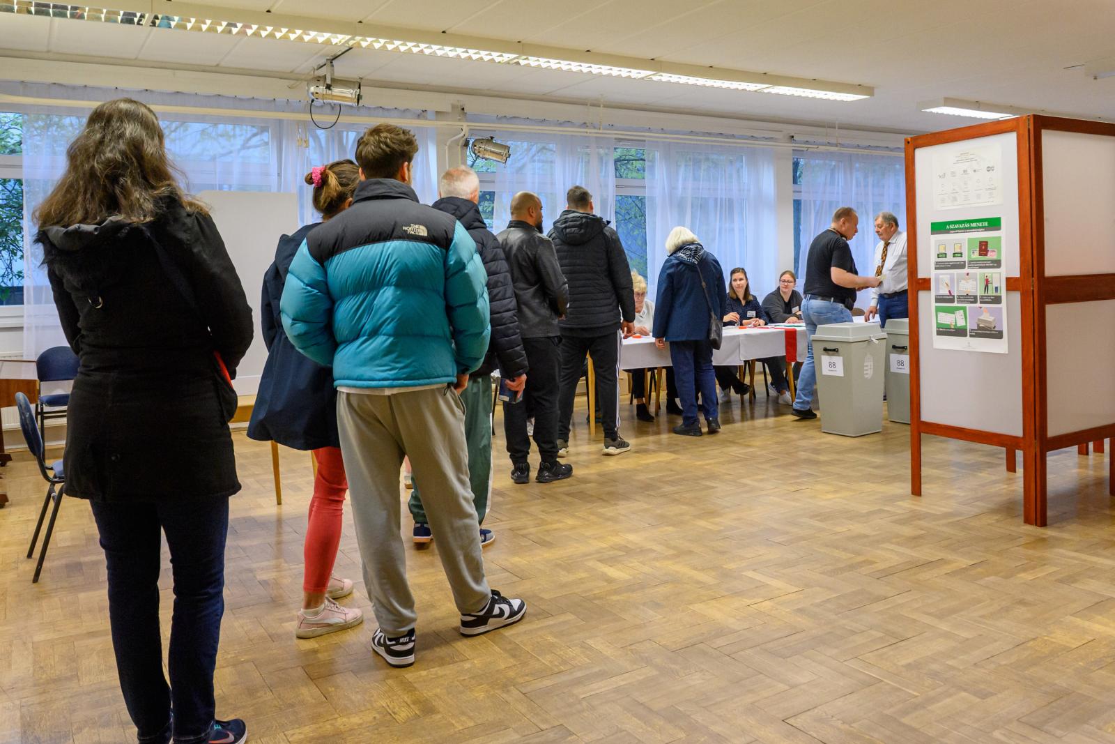Átjelentkező szavazóból országszerte több mint 224 ezer van, fotósunk Budapesten a XI. kerületi Csikihegyek utcában lévő általános iskola előtt örökítette meg a sort.