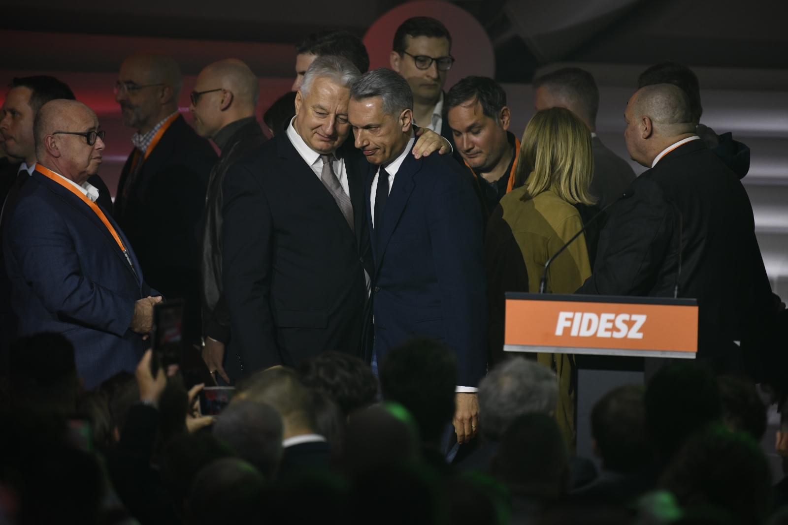 Ennek az országnak most annyi – sziszegte egy hölgy, amikor a Bálna előtti kivetítőn megjelent Orbán Viktor arca és elmondta, hogy elfogadta a választási vereségét és gratulált Magyar Péternek. Kezdetben inkább családias volt a hangulat, mintha előre érezni lehetett volna a Fidesz súlyos vereségét. A Bálna északi bejáratán érkező Fidesz-celebek is jobbára válasz nélkül suhantak el mellettünk: faarccal haladt el Palkovics László egykori csúcsminiszter, Gáspár Győző celeb, Maruzsa Zoltán jelenlegi államtitkár, Gábor László, az Origo egykori főszerkesztője. A volt miniszterelnöki tanácsadót, Bogár Lászlót arról kérdeztük, hogy elfogadja-e a fideszes tábor ha nem azt az eredményt kapják amit reméltek. „Hát miért ne fogadnánk el?” – kérdezett vissza.