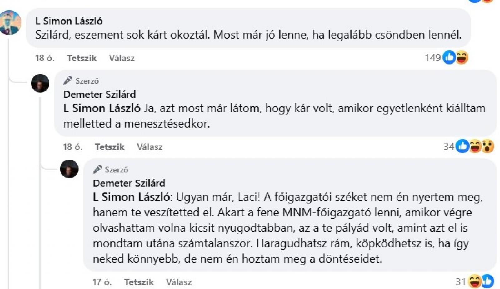 „Csak arra kérünk, figyelj a forgácsokra is!” - Facebookon veszett össze L. Simon László és Demeter Szilárd