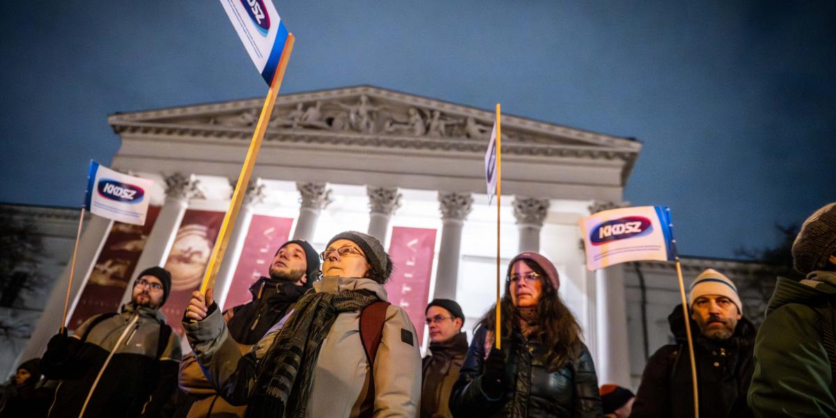 Muzeológusok, könyvtárosok, levéltárosok, közművelődési dolgozók tüntettek a magyar kultúra napján Budapesten.