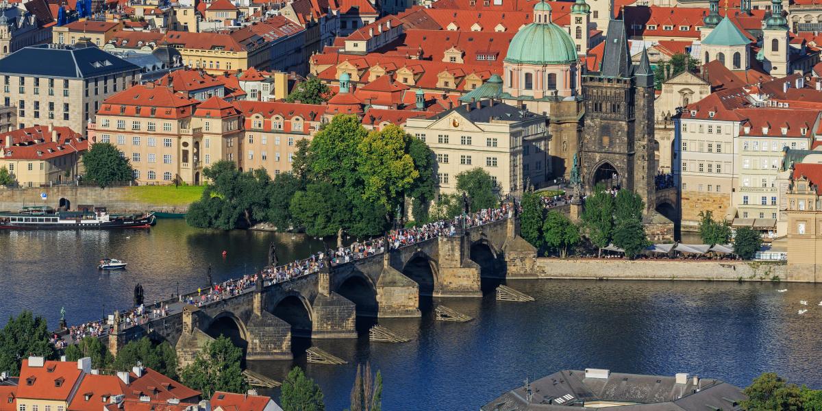 Törtetni kell a prágai Károly hídon, mint a japán metróban
