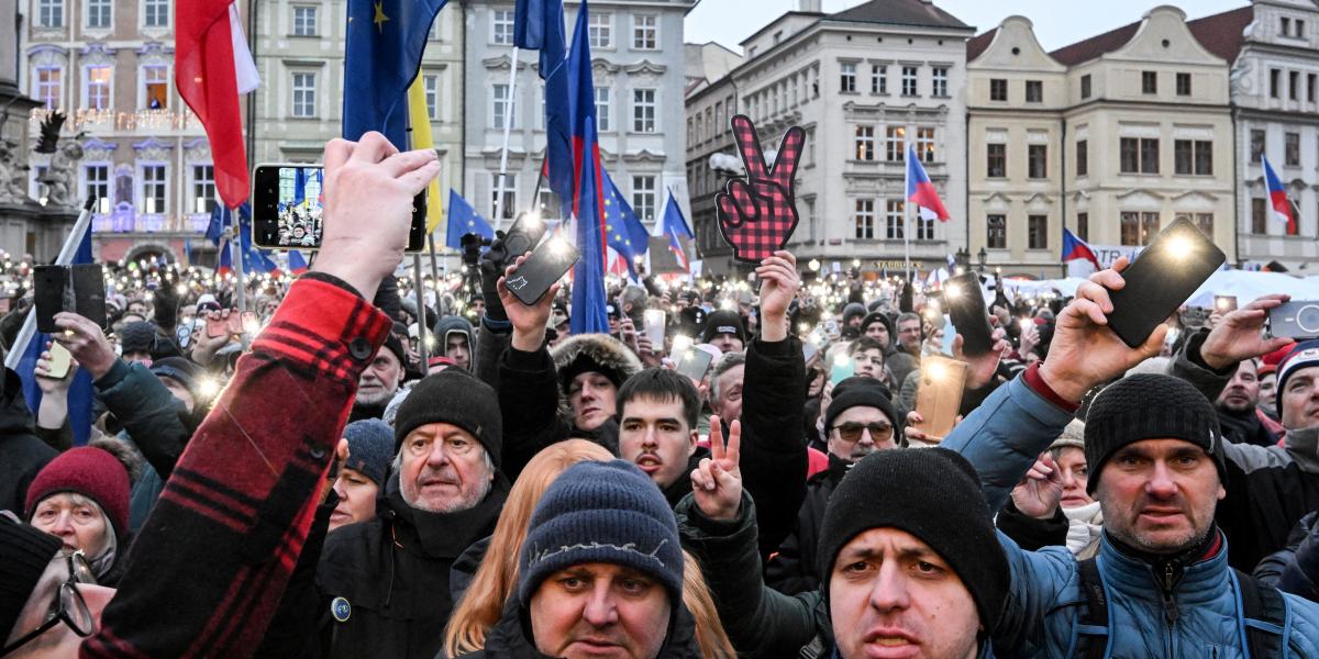 Több tízezer ember állt ki a kormány ellen, az elnök mellett egy prágai tüntetésen