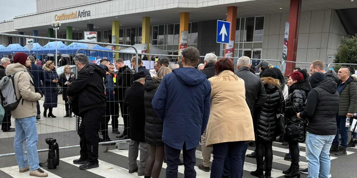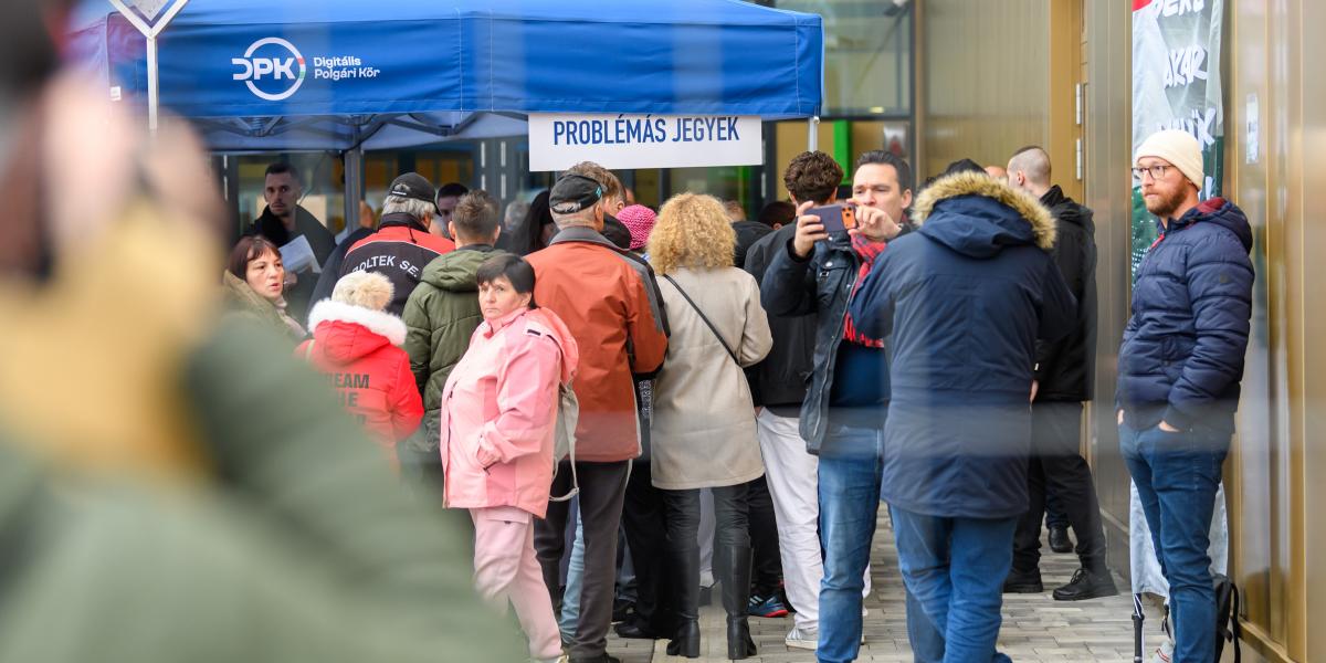 Érkeznek a résztvevők Orbán Viktor háborúellenesnek meghirdetett győri gyűlésére