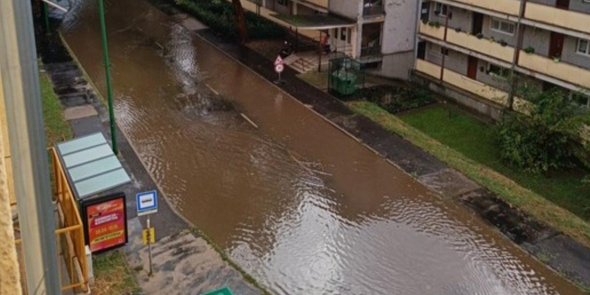 A felhőszakadás nyomán több utcát elöntött a hirtelen jött nagy mennyiségű eső.