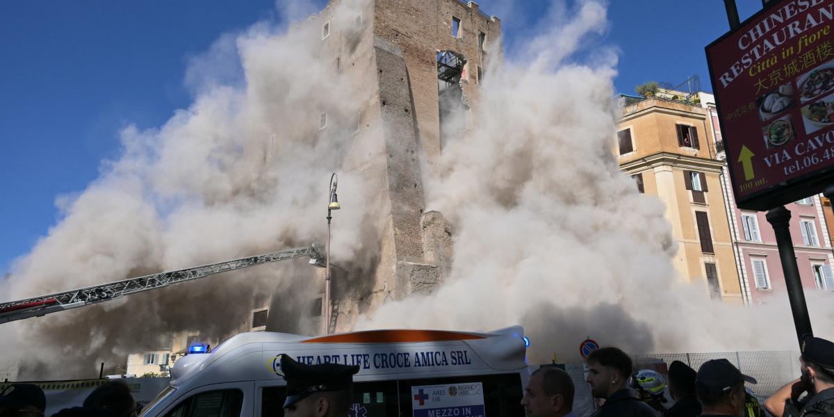 Részben összeomlott egy középkori torony Rómában, egy munkás a romok között rekedt