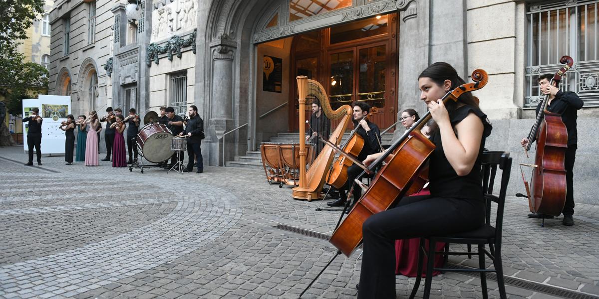 Flashmobot tartottak, függőleges szimfonikus zenekarral ünnepelt a Zeneakadémia