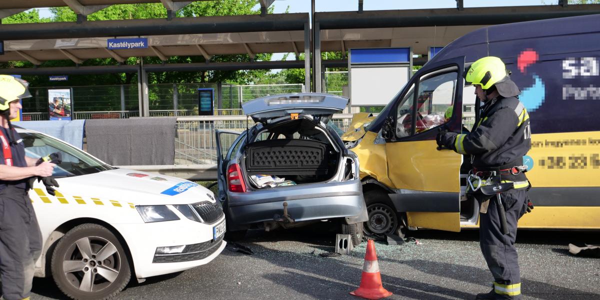 A sofőr bennégett a járműben. Két embert kórházba szállítottak, a rendőrség vizsgálja az eset körülményeit.
