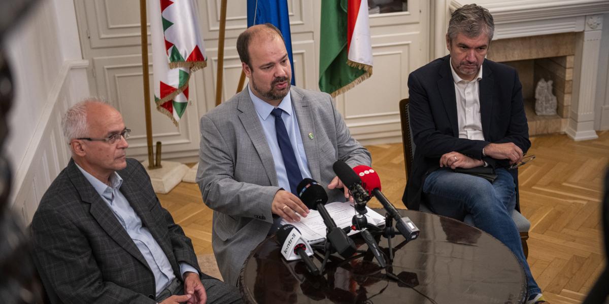 Horváth András, Rózsa András és Hadházy Ákos a sajtótájékoztatón
