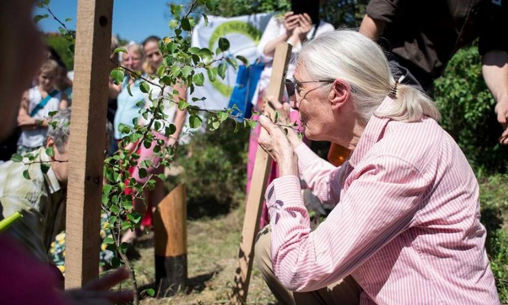 „Minden percben tehetünk valamit, hogy jobb legyen a világ” – mondta a világhírű főemlőskutató pénteken a Sas-hegyen, amikor gyerekek társaságában három őshonos facsemetét ültetett.