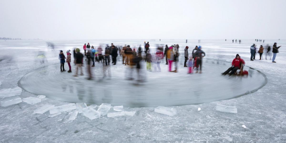 A mínuszok sem vehették el a hétvégén aktívan pihenni vágyók kedvét a szabadidős programoktól, a Balaton jegén például egy mini vidámparkot hoztak létre egy kis kreativitással. Vágtak egy hatalmas, kör alakú léket, a belső jégtömböt pedig egy motorcsónak motorja és hajócsavarja forgatta körbe. A nem mindennapi látványhoz párosult Nagy Ákos súlyemelő produkciója és a jégszobrászok alkotása is, de a bátrabbak ki is próbálhatták a balatonlellei jégkörhintát.