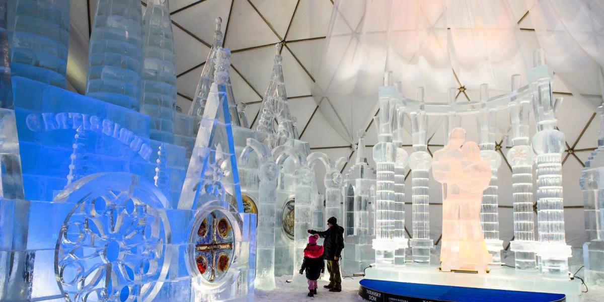 A magas-tátrai jégtemplom a szlovákiai Tarajkán (Hrebienok) látható. A mű a barcelonai Sagrada Familia inspirációi alapján készült, 2018 áprilisáig tekinthető meg. MTI Fotó: Komka Péter.