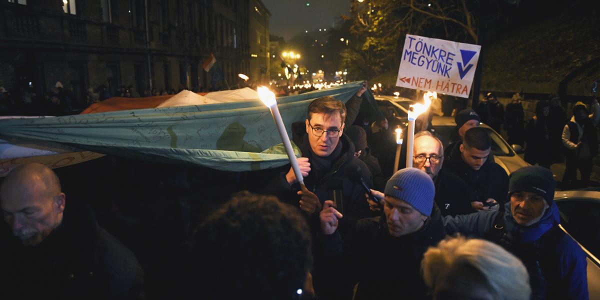 Több ezres tömeg élén vonult a Karmelita elé Karácsony Gergely