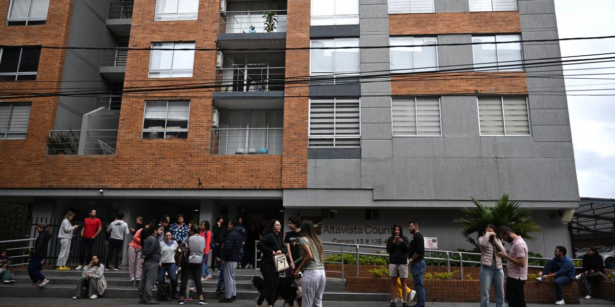 A földrengés kiatt utcára menekült emberek Bogotában.
