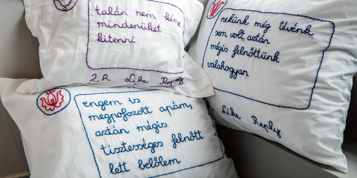 A kommentek olvasása különösen romboló hatással lehet a mentális egészségre, minden második magyar netező kapott már olyan negatív hozzászólást, ami aztán az egész napjára rányomta a bélyegét, vagy elvette a kedvét a megszólalástól is. Ebbe nem kell beletörődnünk, legalábbis ez inspirálta Szaszák Fannit, hogy a digitális tér tipikus cinizmusát, rasszizmusát és áldozathibáztatását kellemesebb, egyben figyelemfelkeltő fizikai formába öntse. Párnahuzatokra hímezte a kommenteket, gyógyító, megmosolyogtató műalkotásokká alakítva az online agresszió hétköznapi jelenségeit. Hungarikum kommentek című kiállítását a Kastner Kommunity kávézó Art Open pályázatának kreatív különdíjasaként lehet megtekinteni a Józsefvárosban.