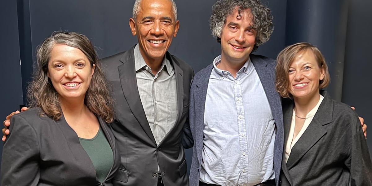 A volt amerikai elnök Kapronczay Stefániával, a Társaság a Szabadságjogokért egykori stratégiai igazgatójával és Léderer Sándorral, a K-Monitor társalapítójával, ügyvezető igazgatójával beszélgetett Zuzanna Rudzińska-Bluszcz korábbi lengyel igazságügyi miniszterhelyettes társaságában.