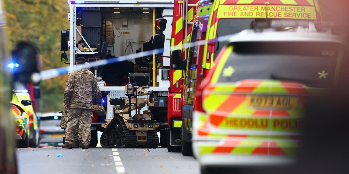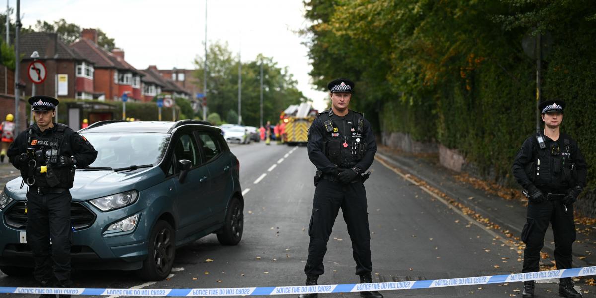 Rendőrök a manchesteri zsinagógánál 2025. október 2-án