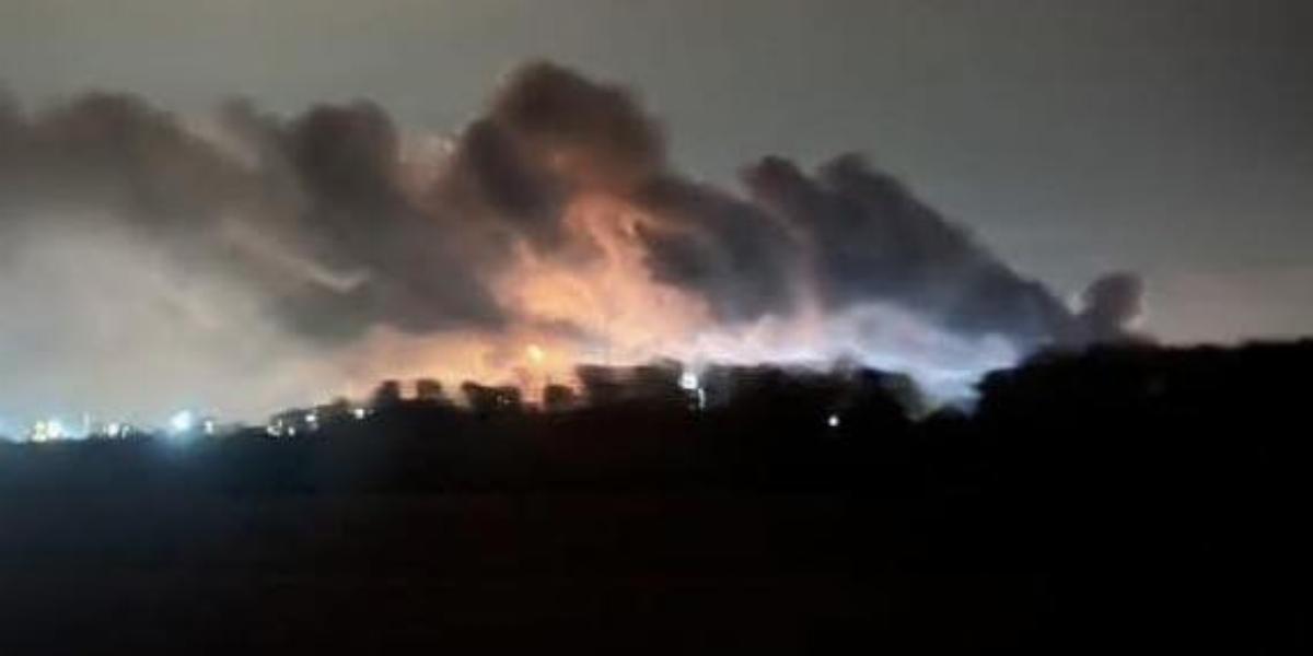 Távoli felvétel az olajfinomítót érő csapásról