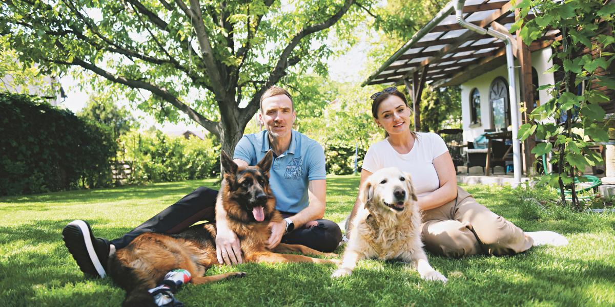 Frida, a német­juhász (balra) és Charlie a kezdeti nehézségek után immár teljes harmóniában él együtt a  családdal