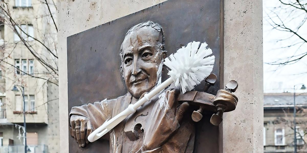 Vécékeféket raktak a Kutyapárt aktivistái a Muzsikus Cigányok parkja oszlopaira