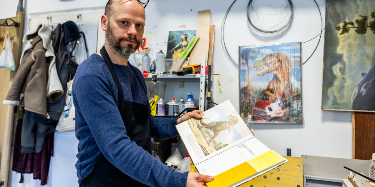 Gitározó Tarbosaurus, forró csokoládét szürcsölő Alien és diszkosz helyett Millennium Falcont vető Darth Vader is látható Karácsonyi László festményein és falikárpitjain. A művésszel a gyerekkora kedvenc motívumairól, filmjeiről és azok utóhatásáról beszélgettünk, illetve a rokokó mint művészeti korszak is szóba került.