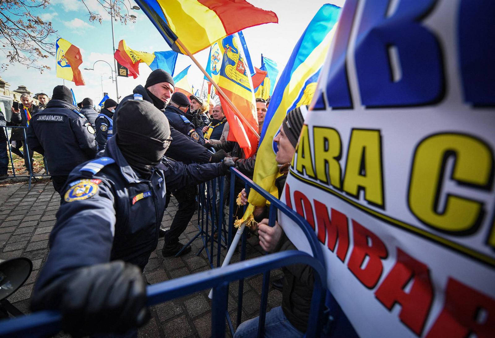 Kedden, december 21-én, a rendszerváltást hozó 1989-es forradalom egész országra kiterjedésének 32. évfordulóján a Románok Egyesüléséért Szövetség (AUR) szélsőjobboldali párt engedély nélküli tüntetést szervezett a bukaresti parlament épületénél. Az eredetileg a munkahelyi Covid-igazolvány bevezetése ellen tiltakozó mintegy kétezer tüntető jórészét az ország különböző településeiről buszoztatták a helyszínre. "Szabadság", "Átgázolunk rajtatok" – skandálták a tüntetők. A képviselőház bejárata előtt egy óriástranszparenst helyeztek el "Szabadság, bizonyítványok nélkül" felirattal. Egy mintegy 100 fős keménymag benyomult a parlament udvarára - az épületben lévőket foglyul ejtették, több autót, köztük a japán és az amerikai nagykövetét, megrongálták. A rendőrség fékezett habzású közbelépése után az európai botrányhőssé avanzsált vírustagadó és oltásellenes Diana Sosoaca szenátor vezetésével átmentek a kormány épületéhez is. A tiltakozáson az AUR társelnöke, az úzvölgyi katonai temető elleni román támadásban is főszerepet játszó, a fanatikus focidrukkerek egyik volt vezetője, George Simion képviselő, valamint a párt több más törvényhozója is részt vett.