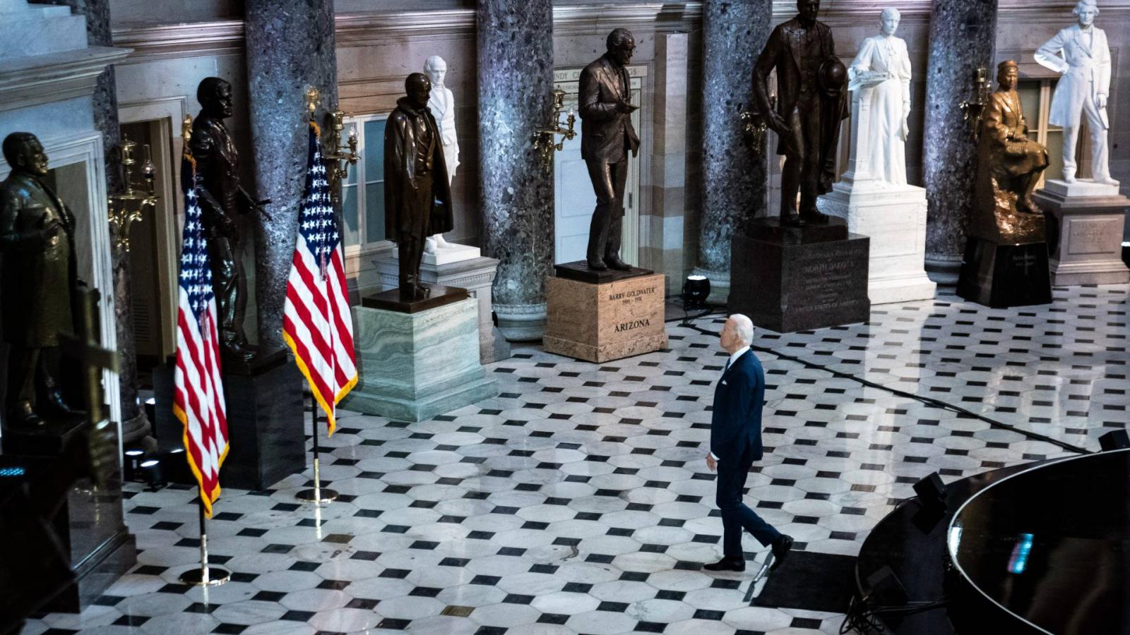 Biden harcias hangneme és többször is megemelt hangja éles ellentétben állt a beiktatásakor használt békülékeny tónussal, a nemzet egységének helyreállításában reménykedő üzenettel, ráadásul mintha tudatosan rá is játszott volna ellenlábasa közismert hiúságára. Egyetlen egyszer sem ejtette ki Donald Trump nevét, de tizenhatszor is szóba hozta „az előző elnököt”, aki hazugságaival már előre megingatta a választások tisztaságába vetett hitet és ezzel aláásta az amerikai demokráciát. Különböző megfogalmazásokban újra és újra hangsúlyozta, hogy elődje vesztett, hétmillióval kevesebb voksot kapott, de ebbe nem tudott beletörődni, ezért küldte híveit a törvényhozás épületének ostromára, ezért „szegez tőrt a demokrácia torkának”. Azt mondta, hogy beleáll a falon támadt résbe és megvédi a nemzetet és együttműködést ajánlott azoknak a republikánusoknak, akik ugyancsak hajlandók kiállni a demokráciáért.