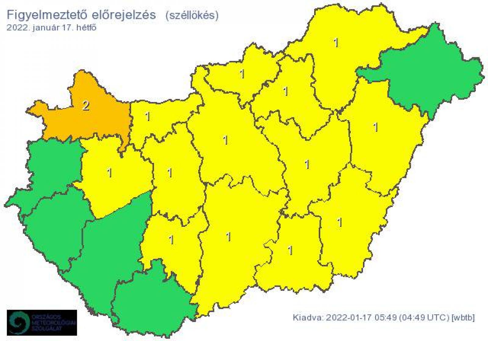 Az OMSZ által közzétett veszélyjelzési térkép tanúsága szerint, csak Vas, Zala, Somogy, Baranya és Szabolcs-Szatmár-Bereg megye ússza meg viharos szél nélkül, Győr Moson Sopron megyében másodfokú, a többiben elsőfokú riasztás van érvényben.