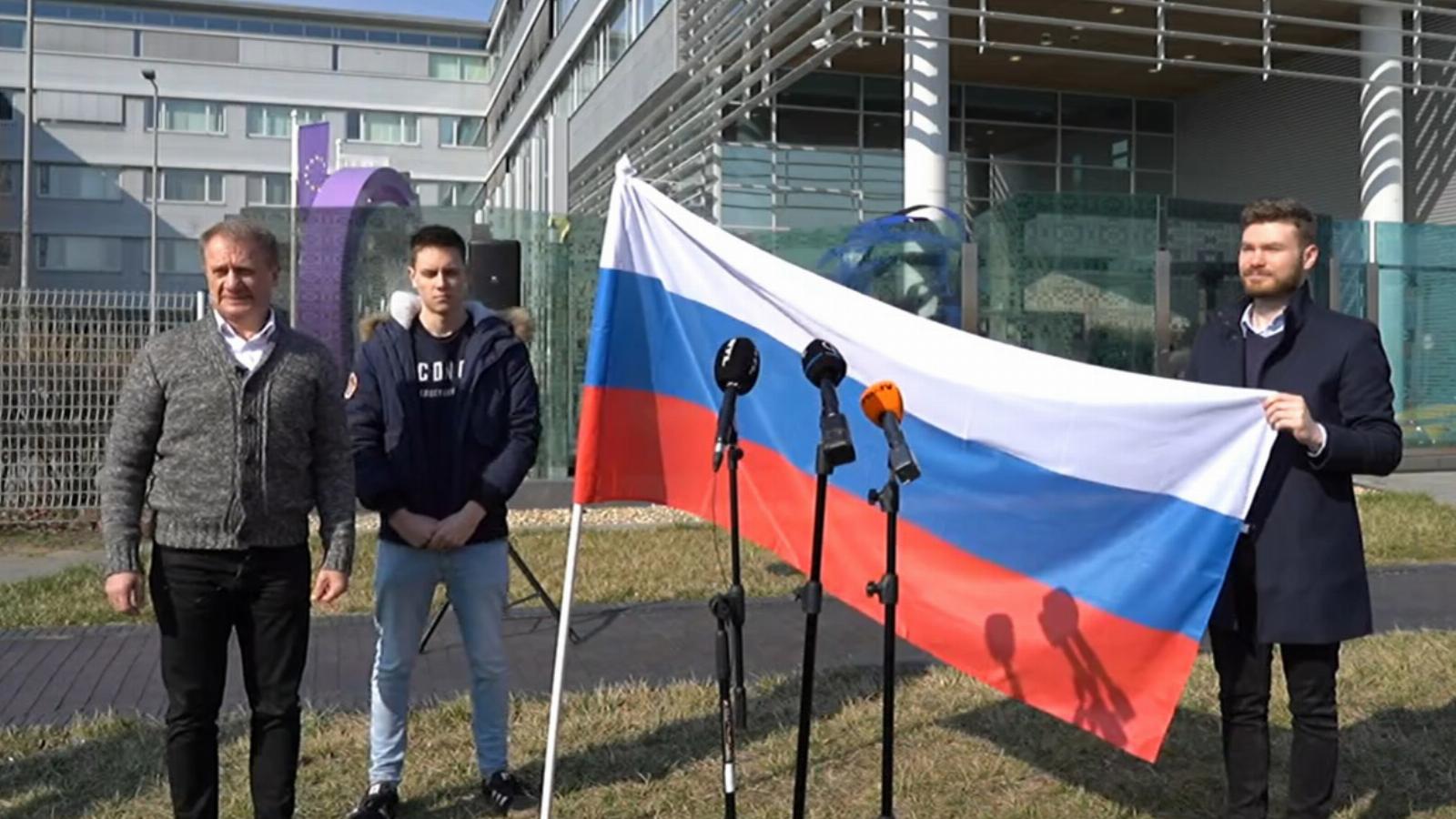 Varju László, a DK alelnöke a DK ifjúsági szervezetével flashmobbal egybekötött sajtótájékoztató keretében orosz zászlót helyezett el az MTVA épülete elé, miközben az orosz himnusz szólt, hogy egyértelművé tegyék: a Kunigunda úti épület már rég nem magyar közmédiaként, hanem az orosz propaganda európai központjaként működik.