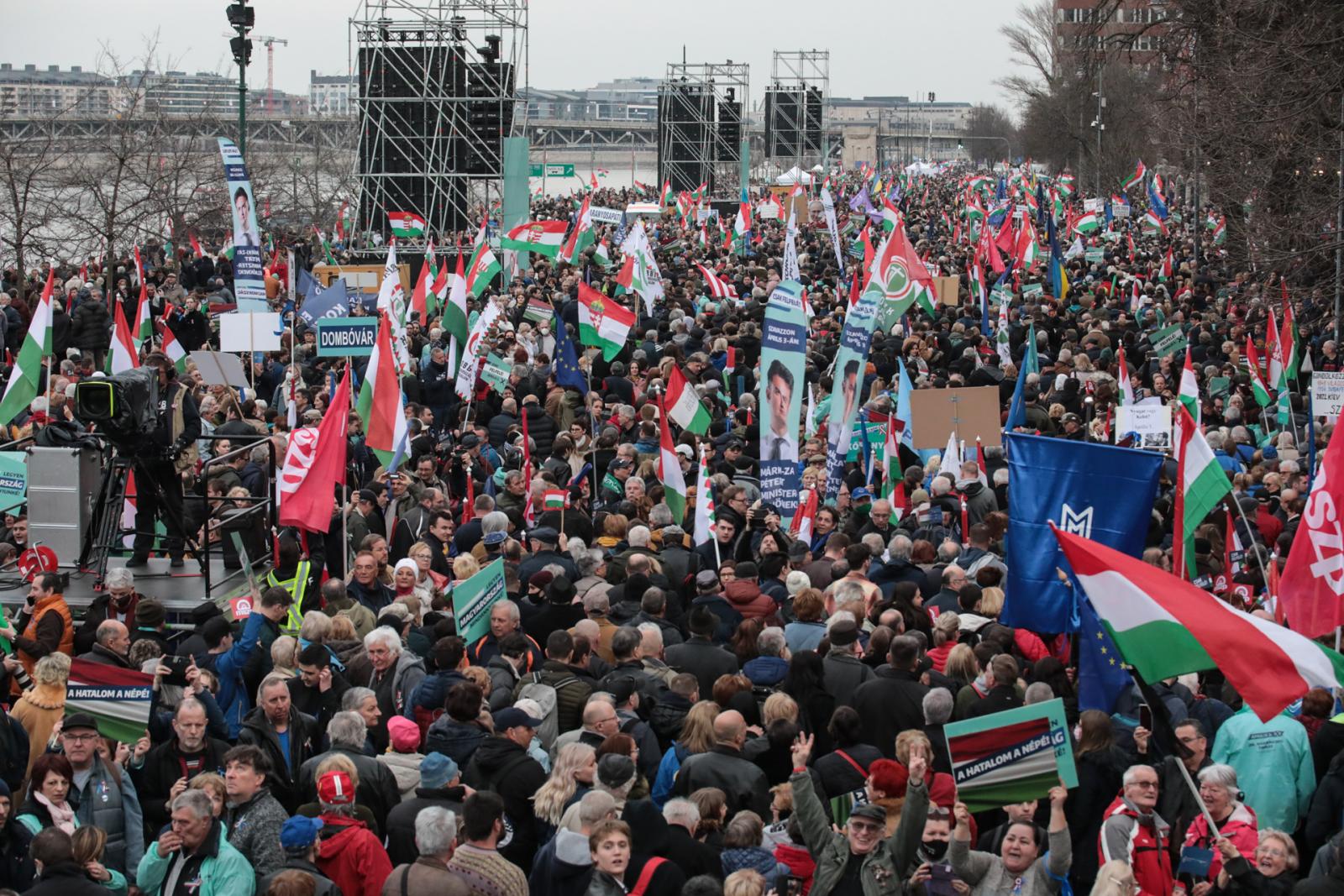 – Ha most nem sikerül nyernie az ellenzéknek, akkor végképp eláshatja magát. Mert most minden együtt van: egység van, vannak közös jelöltek, és most Orbán még le is nullázta magát Putyin pincsijeként – a gyorselemzés Benedektől származik, aki egyetemista barátaival jött ki, elsősorban Márki-Zay Pétert meghallgatni. – Abban bízom, hogy ezeket a pártokat, amelyek 12 éve nem képesek sikert felmutatni Márki-Zay összefogja, és nem fogja hagyni, hogy szétbarmolják az egységet – indokolja, miért a miniszterelnök-jelölt érdekli a leginkább. A felvetésre, hogy ehhez nem kell kijönni, online is hallgathatják, a fiatalok azt válaszolják, az nem akkora buli.